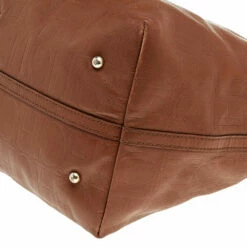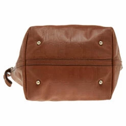 This luxurious leather tote is embossed with the brand monogram all over. The suede-lined interior is quite spacious. This admirable Carolina Herrera tote in a brown shade is complete with dual top handles.