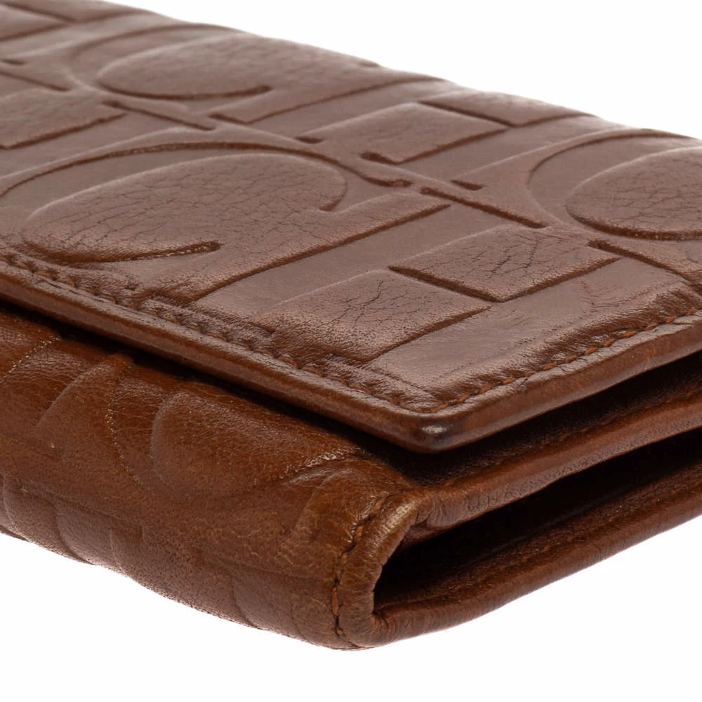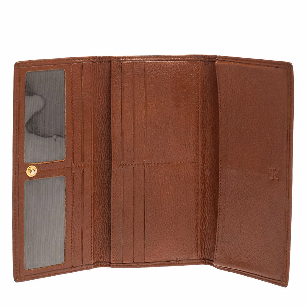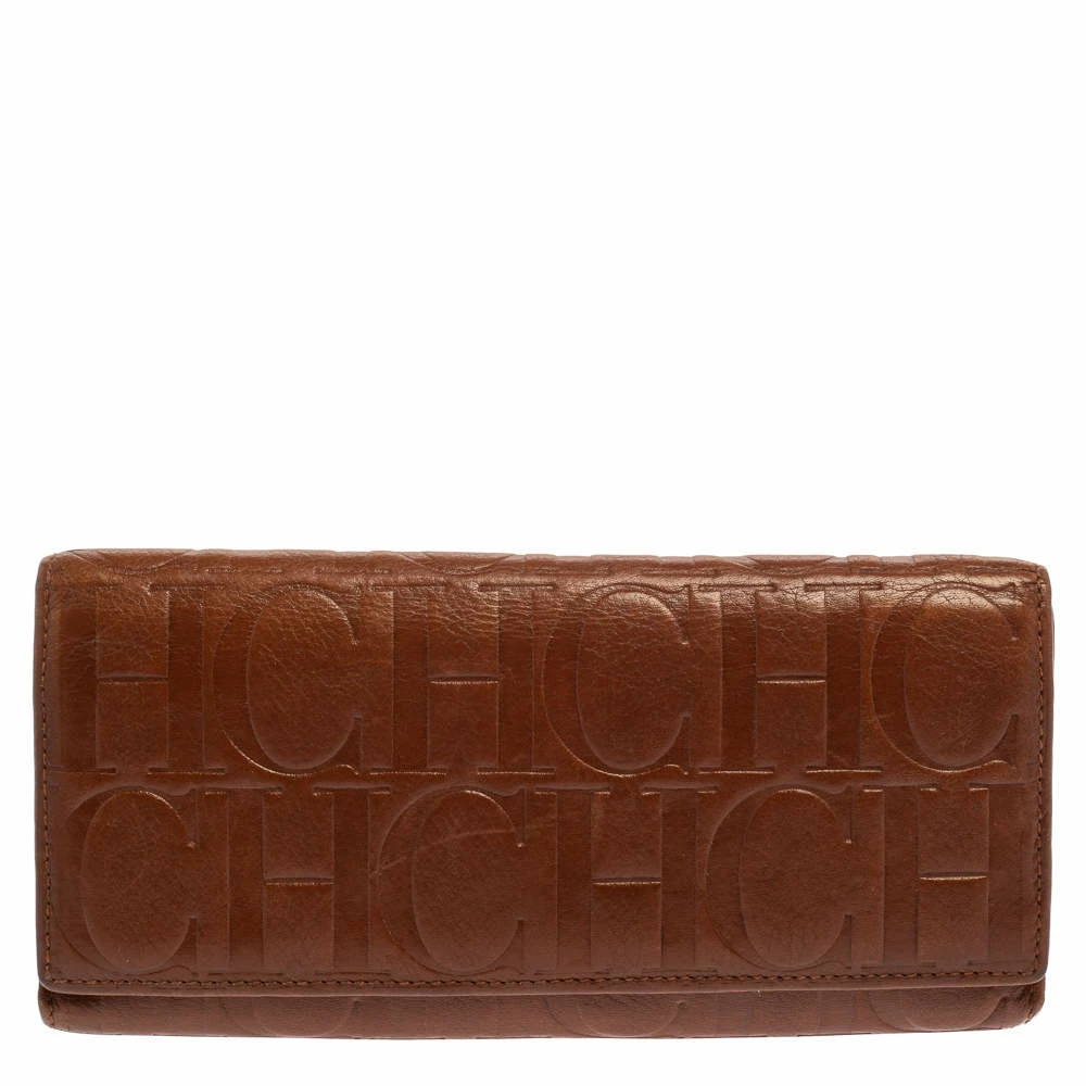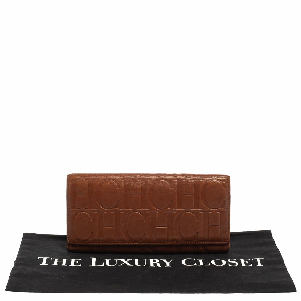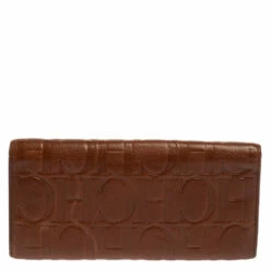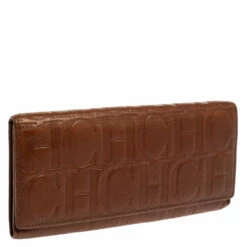 You can now put an end to your search for a stylish wallet, thanks to Carolina Herrera’s versatile continental wallet. Crafted from monogram leather in a brown shade, it features a front flap that opens to reveal an interior equipped with multiple card slots and compartments.