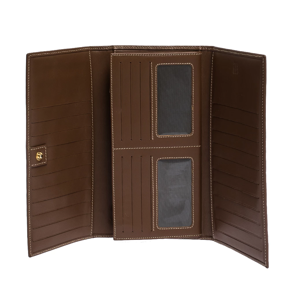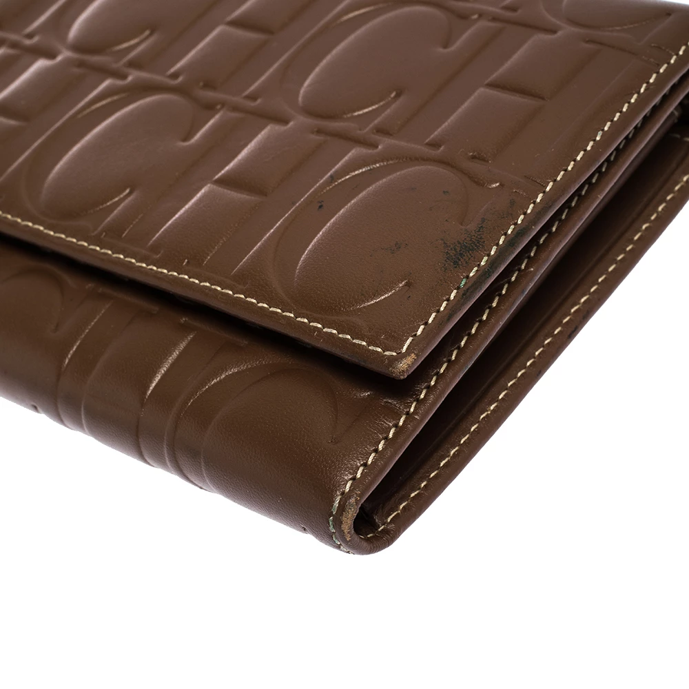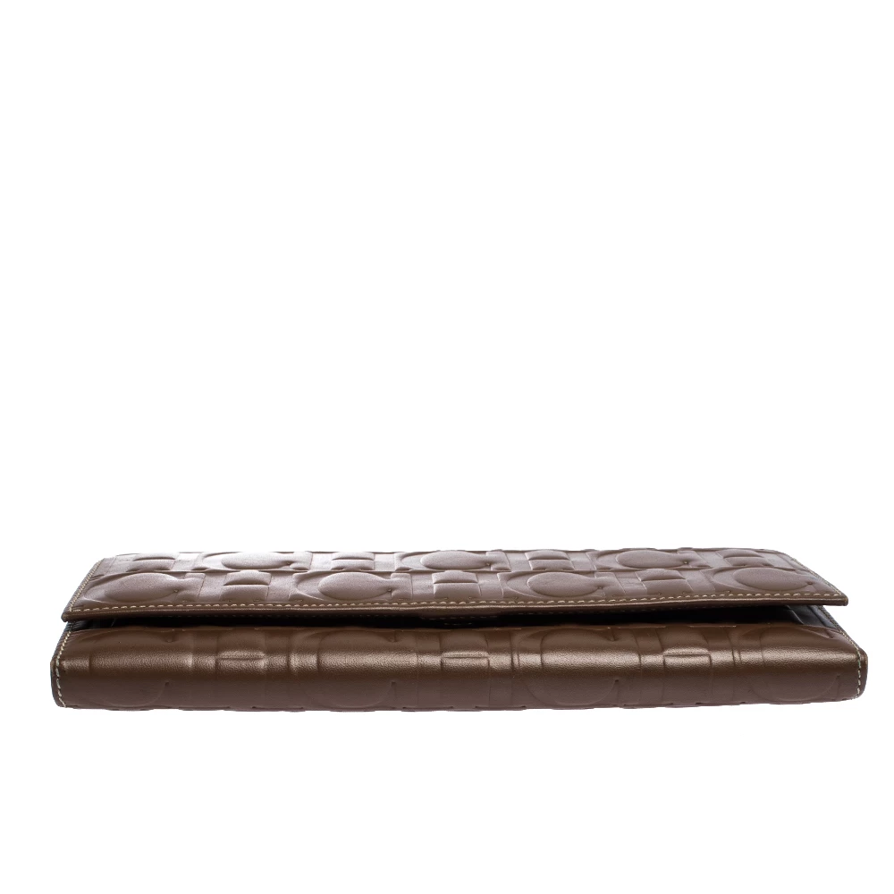 This wallet from Carolina Herrera is one simple creation you must own. It has been crafted from monogram leather and it flaunts a versatile brown shade. It also comes equipped with a flap that opens to reveal multiple card slots, open compartments, and a zipped pocket.