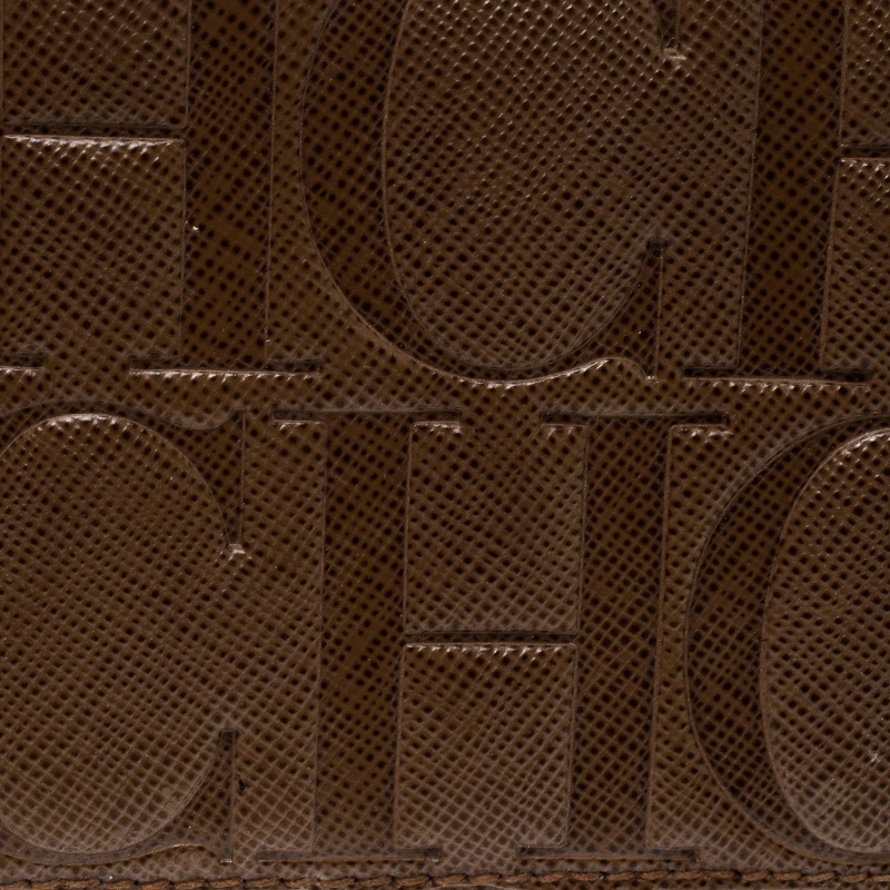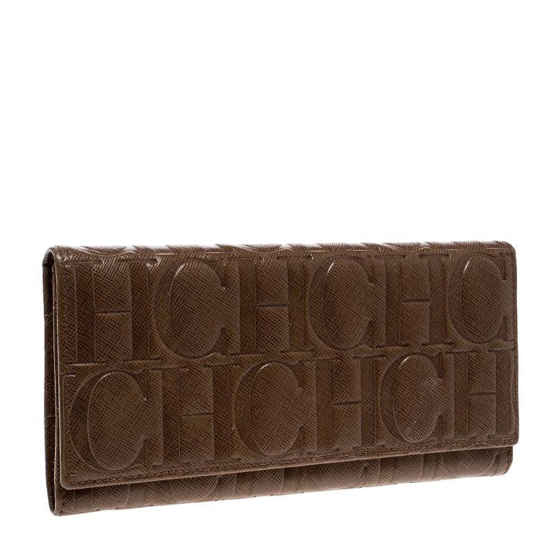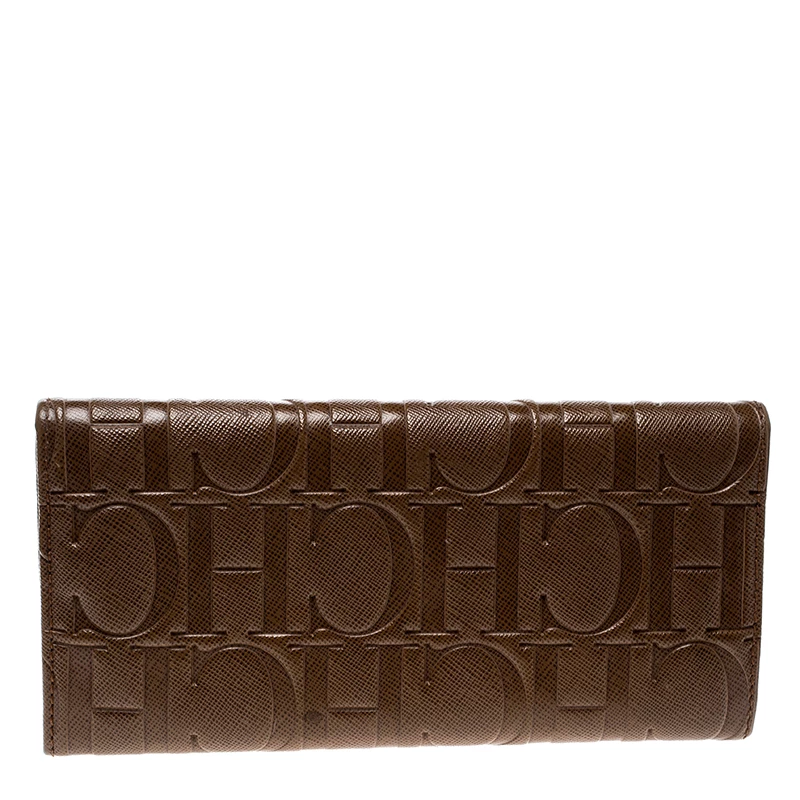 Crafted from monogram leather, Carolina Herrera brown continental wallet has a flat shape allowing it to be carried easily or slipped into your bags. Its interior is styled with multiple card slots and pockets to keep things organised. Secured by a snap closure, it is the accessory for everyday use.