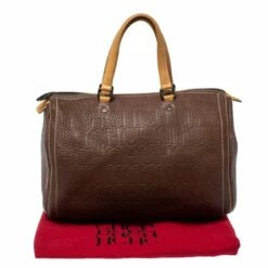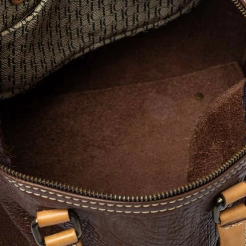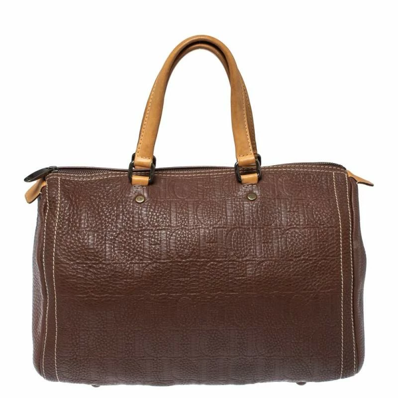 A truly elegant piece to add to your collection, this Andy Boston Bag by Carolina Herrera comes crafted from brown leather and styled with monogram detailing all over. It features a top zip closure, two handles, protective metal feet, and a spacious interior to house your essentials. This bag is a creation for all occasions.