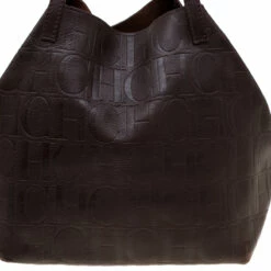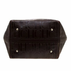Look fashionable by adorning this delightful monogram leather bag. Lined with suede and held by two handles, this bag is trendy and also durable. An ideal pick of the season is this chic bag from the house of Carolina Herrera.