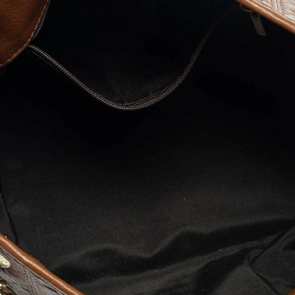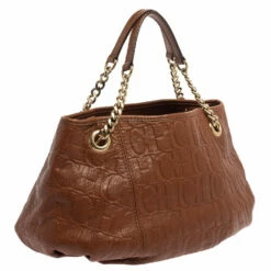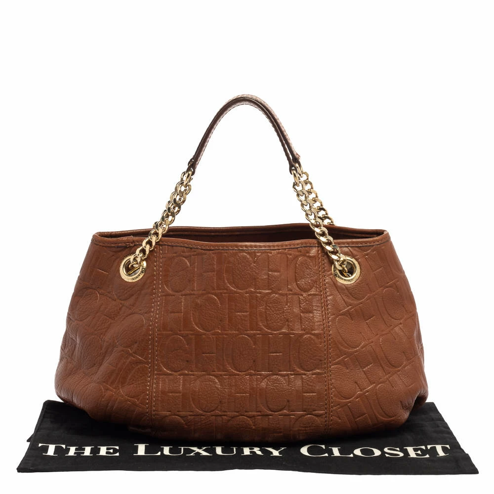 This Poppy bag by Carolina Herrera combines function and fashion. Crafted from monogram leather, the bag features a spacious fabric interior. The hobo flaunts a classy brown shade and it is held by two chain handles.