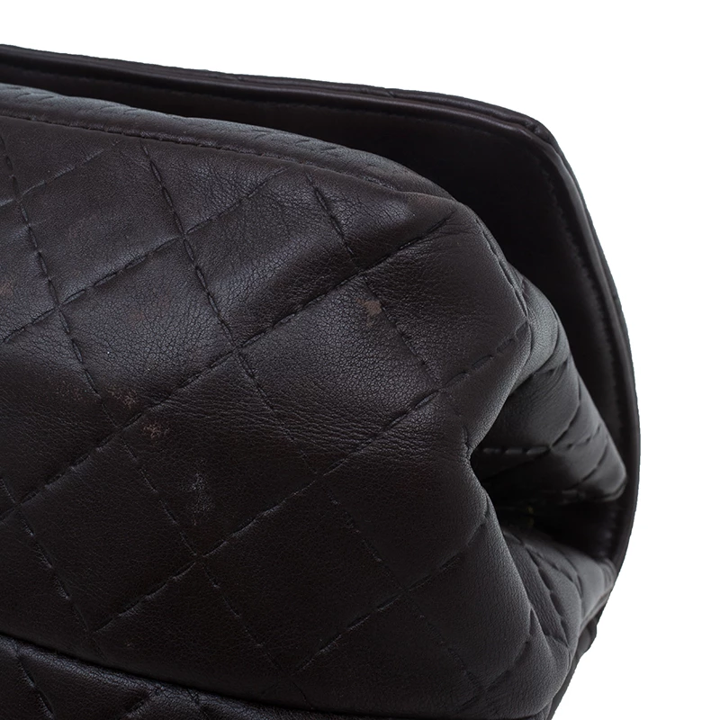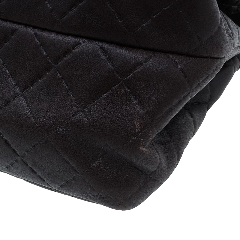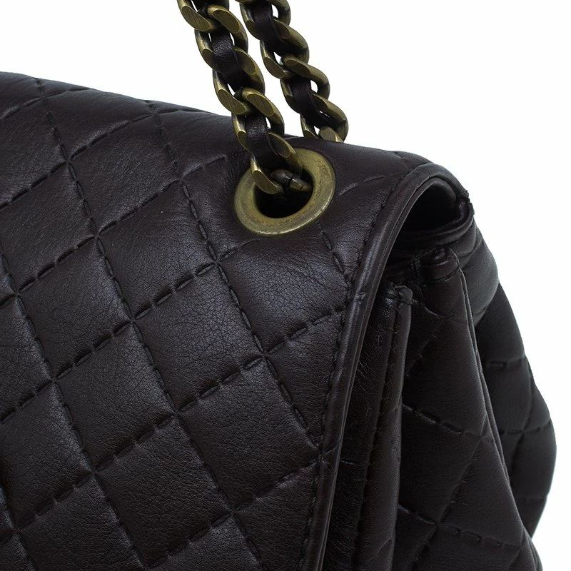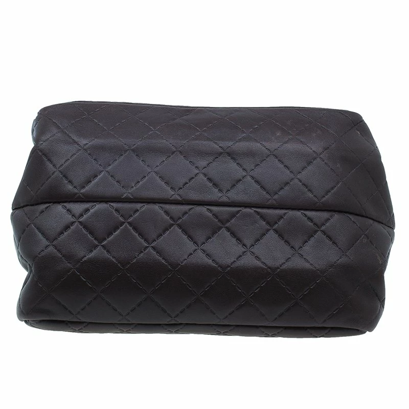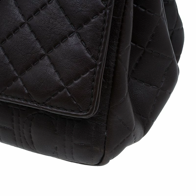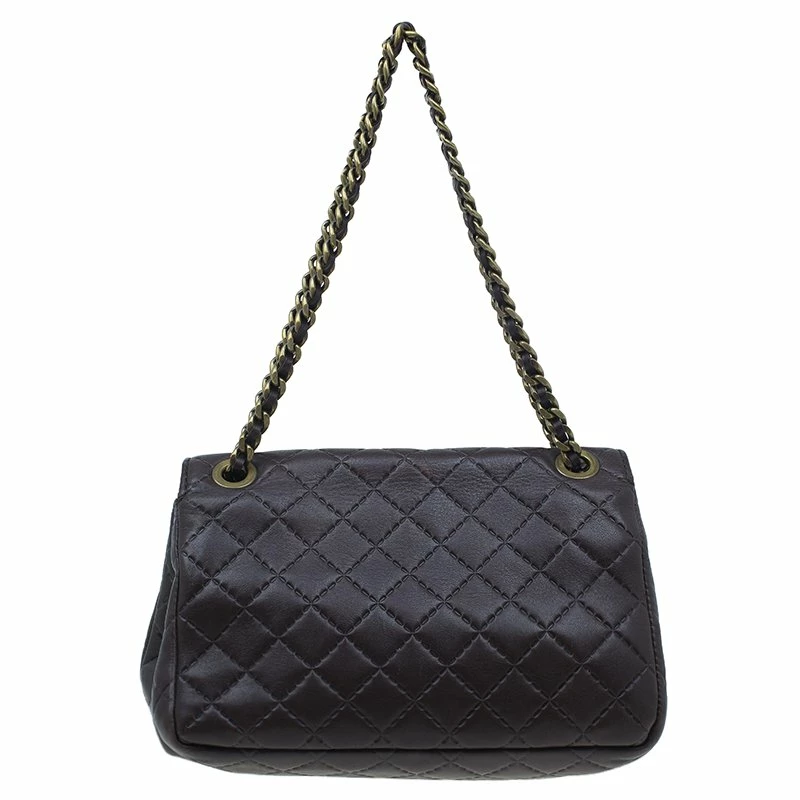 This version of the Carolina Herrera bag is crafted from soft quilted leather embossed with the diamond stitching pattern and CH monogram at the front. It is accented with chain link and leather shoulder straps, a front flap with a snap closure , a metal brand engraved bow detailing at the front and gold-tone hardware. The spacious interior is lined with fabric and features two compartments and a zip pocket.