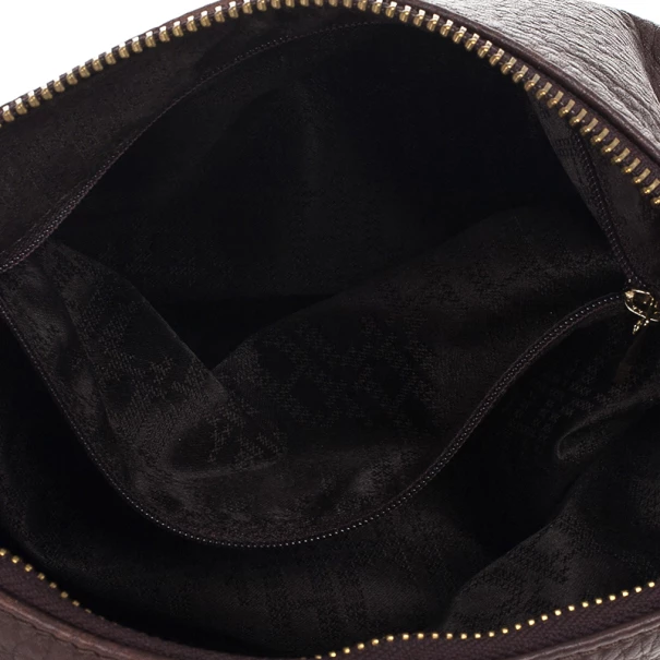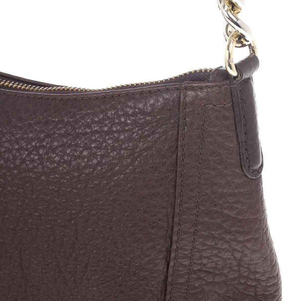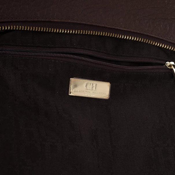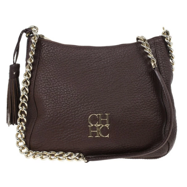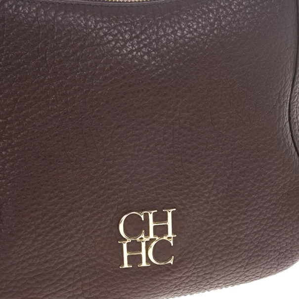Add an interesting finish to your outfit with this stunning Carolina Herrera Leather Maria Shoulder Bag. Crafted from grained leather in a versatile shade of brown, it is accented with a CH HC metal logo, a top zip closure and a comfortable chain link shoulder strap. The spacious interior is lined with black textile and features a zip pocket with a metal label.Original Retail Price: US $650
