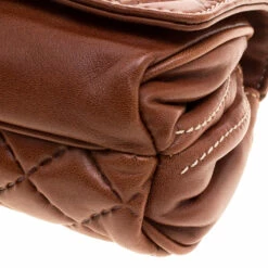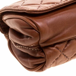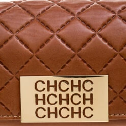 Uniquely crafted, this clutch by Caroline Herrera is made of smooth and top-quality brown leather. It has a quilted pattern and is augmented by gold-toned CH monogrammed on the front flap. The clutch has two compartments and the interior is lined with fabric.