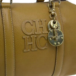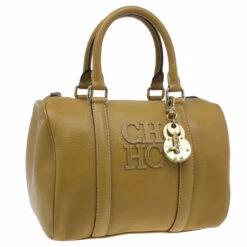 This version of the classic Boston Bag by Carolina Herrera is crafted from camel leather that highlights stitched CH detailing at the front. It is accented with leather trim, double leather handles, top zip closure, a padlock and key charm and gold-tone hardware. The spacious interior is lined with fabric and features one zipped pocket.