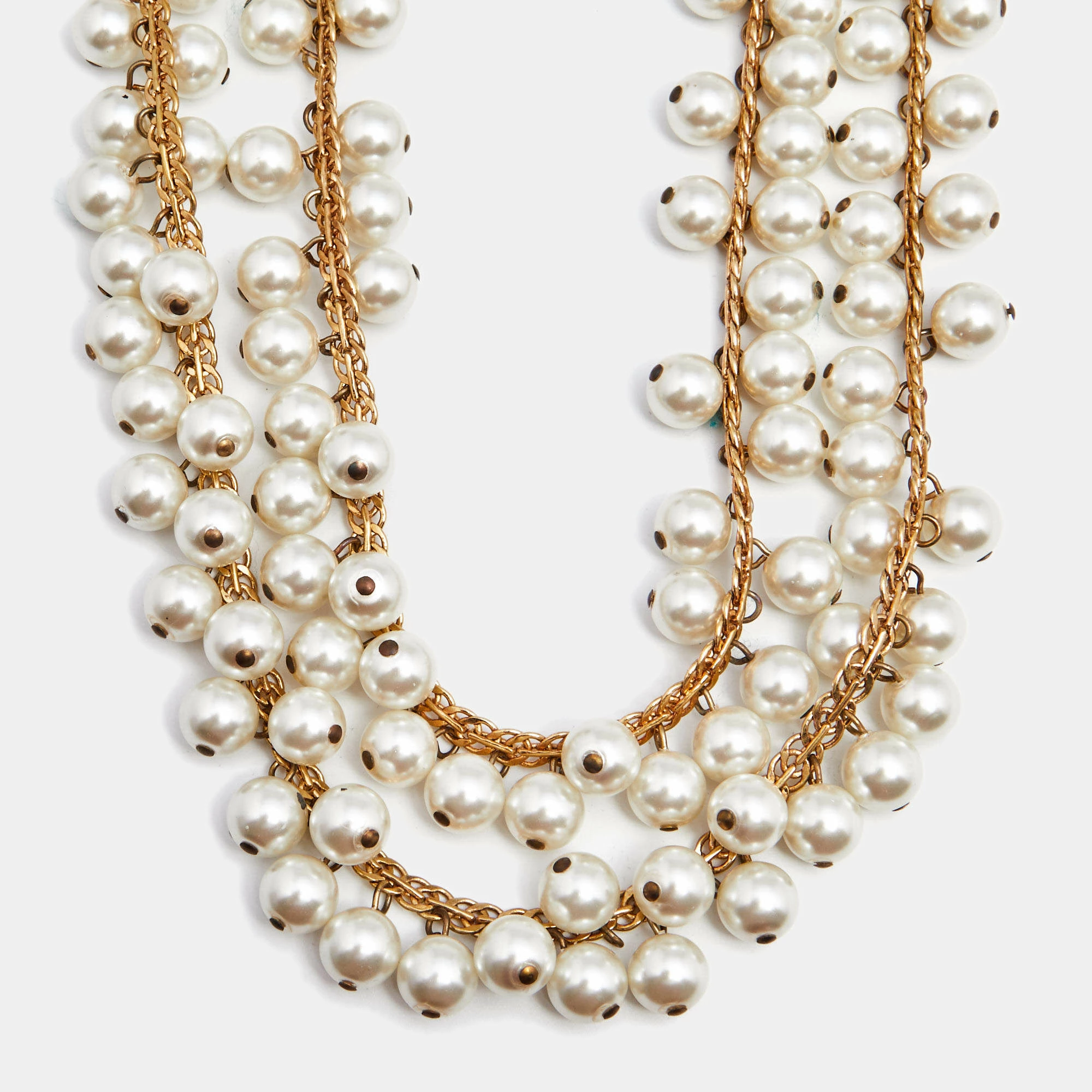This beautiful necklace from Carolina Herrera is effortlessly chic and also subtly glamorous for both day and night. Crafted using gold-tone metal, the necklace has two strands of faux pearls.