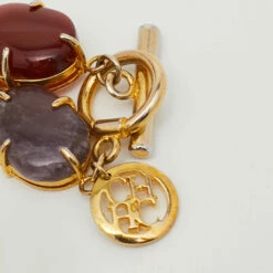 Carolina Herrera’s beautiful bracelet is a perfectly-chic accessory to bring home. Encrusted with multicolored gemstones, this gold-tone bracelet is finished with secure fastening and a logo charm. Wear it with your summer dresses and floral silhouettes.