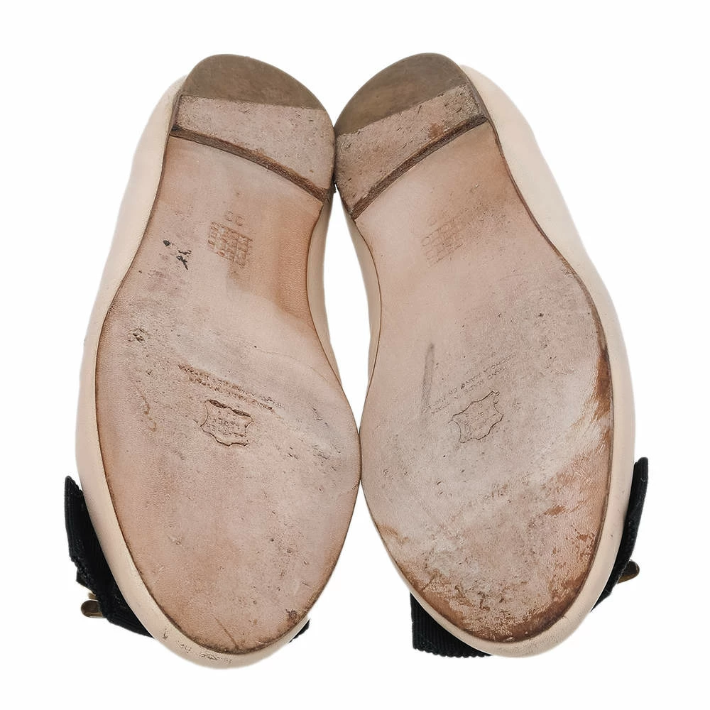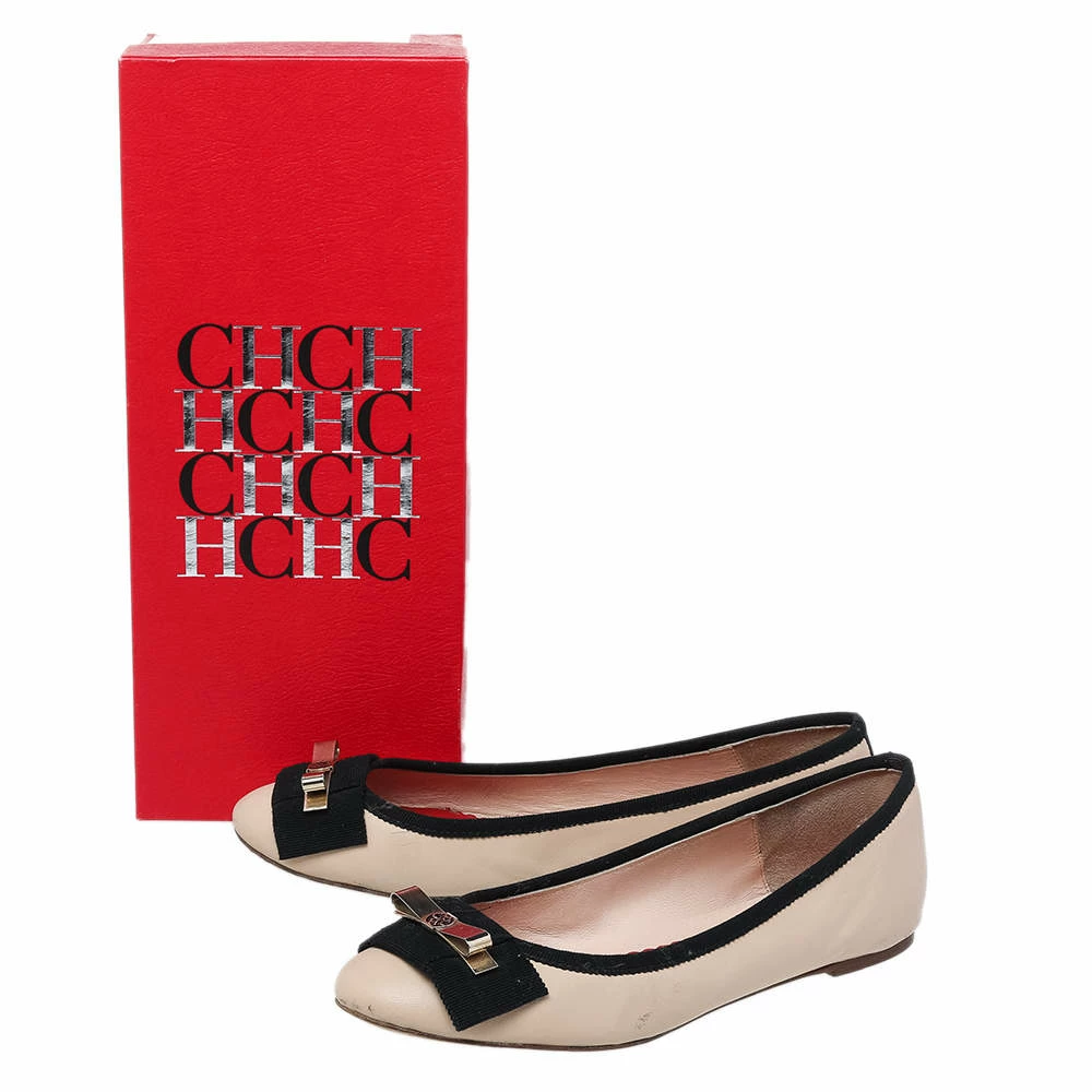 Effortlessly feel and look your best whenever you step out in this gorgeous pair of ballet flats from Carolina Herrera. Crafted from beige leather, the flats are styled with bows on the toes and contrasting fabric trims.