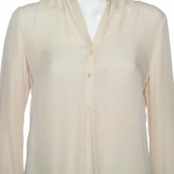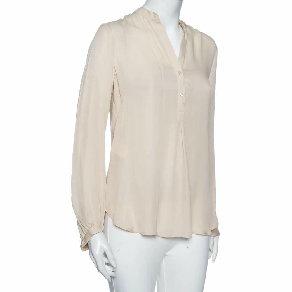 As you don this impeccable blouse from Carolina Herrera, you are about to experience nothing but pure elegance and refreshing style. Made with cream silk, it displays a V-neck and buttons down the front and has buttoned cuffs. Achieve a simplistic yet chic style when you wear this blouse.