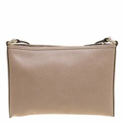 Complete all your casual outings with this crossbody bag from Carolina Herrera. It has been crafted from dark beige leather and accented with gold tone hardware. The bag comes with the signature CH stitched on the front, an adjustable shoulder strap and a fabric lined interior.