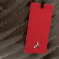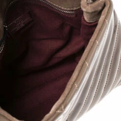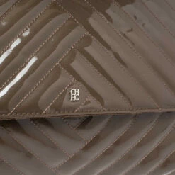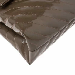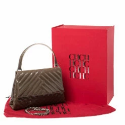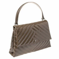 This stylish bag is perfect for day and night ensembles. Carolina Herrera has crafted this bag from glossy patent leather in a dark beige hue. It has a chevron-quilted exterior, front flap, a top handle, logo detailing in the front, a spacious fabric-lined interior and silver-tone hardware.