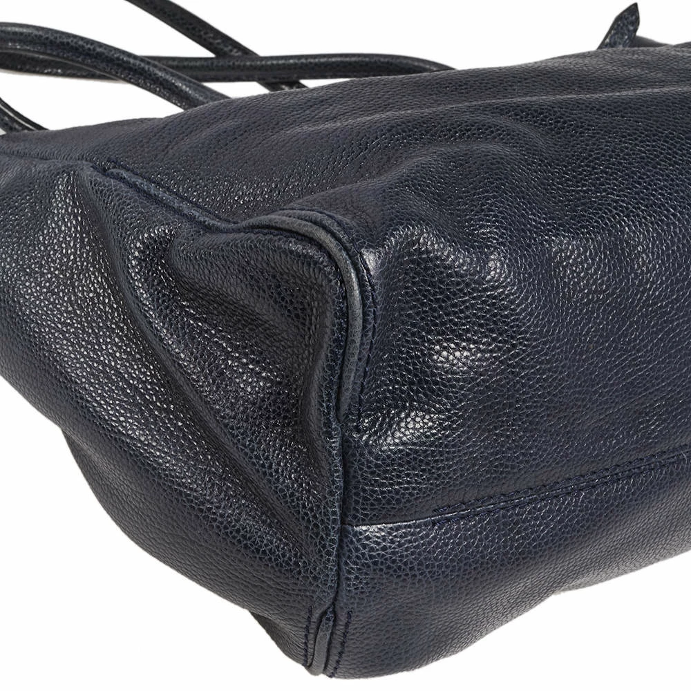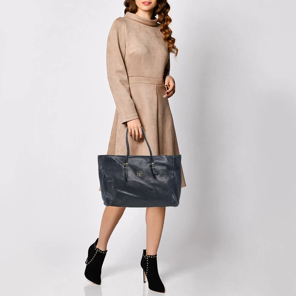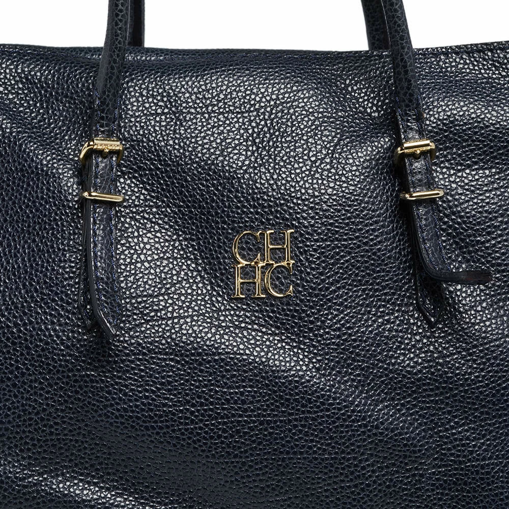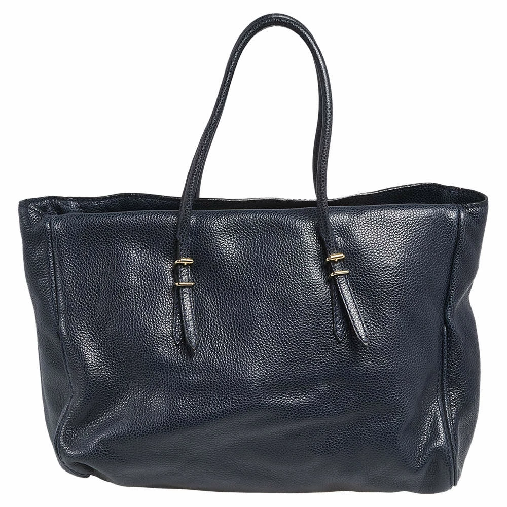 Understated and refined in design and construction, the Tempo collection has designs that are emphatically perfected. In a graceful dark blue color, this bag will add to your glam quotient. It is made with leather, has gold-tone hardware, and the interior is fitted with a slip pocket. Two leather handles with gold buckles give this bag unparalleled elegance.