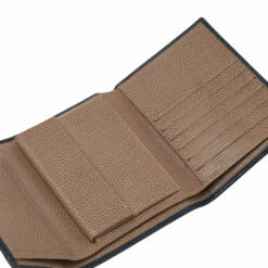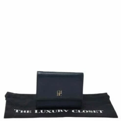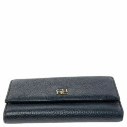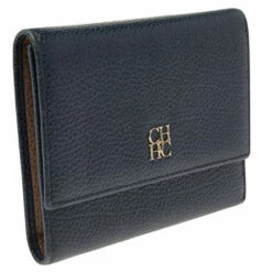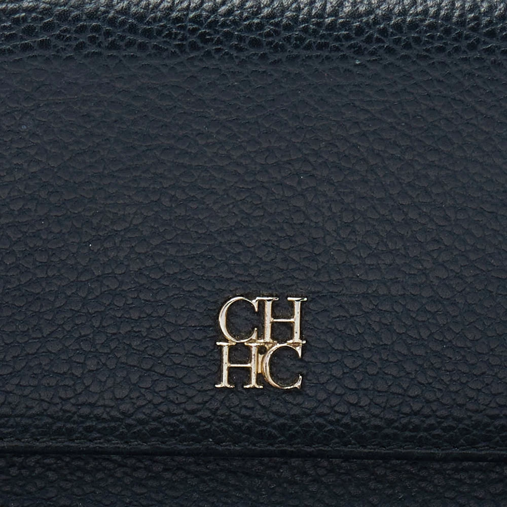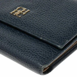 Packed with functional features of multiple slots, a bill compartment, and a flap coin pocket, the Carolina Herrera trifold wallet is neatly wrapped close with a gold-tone press stud. It is crafted using dark blue leather.