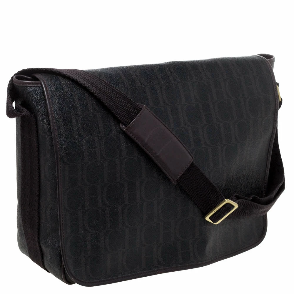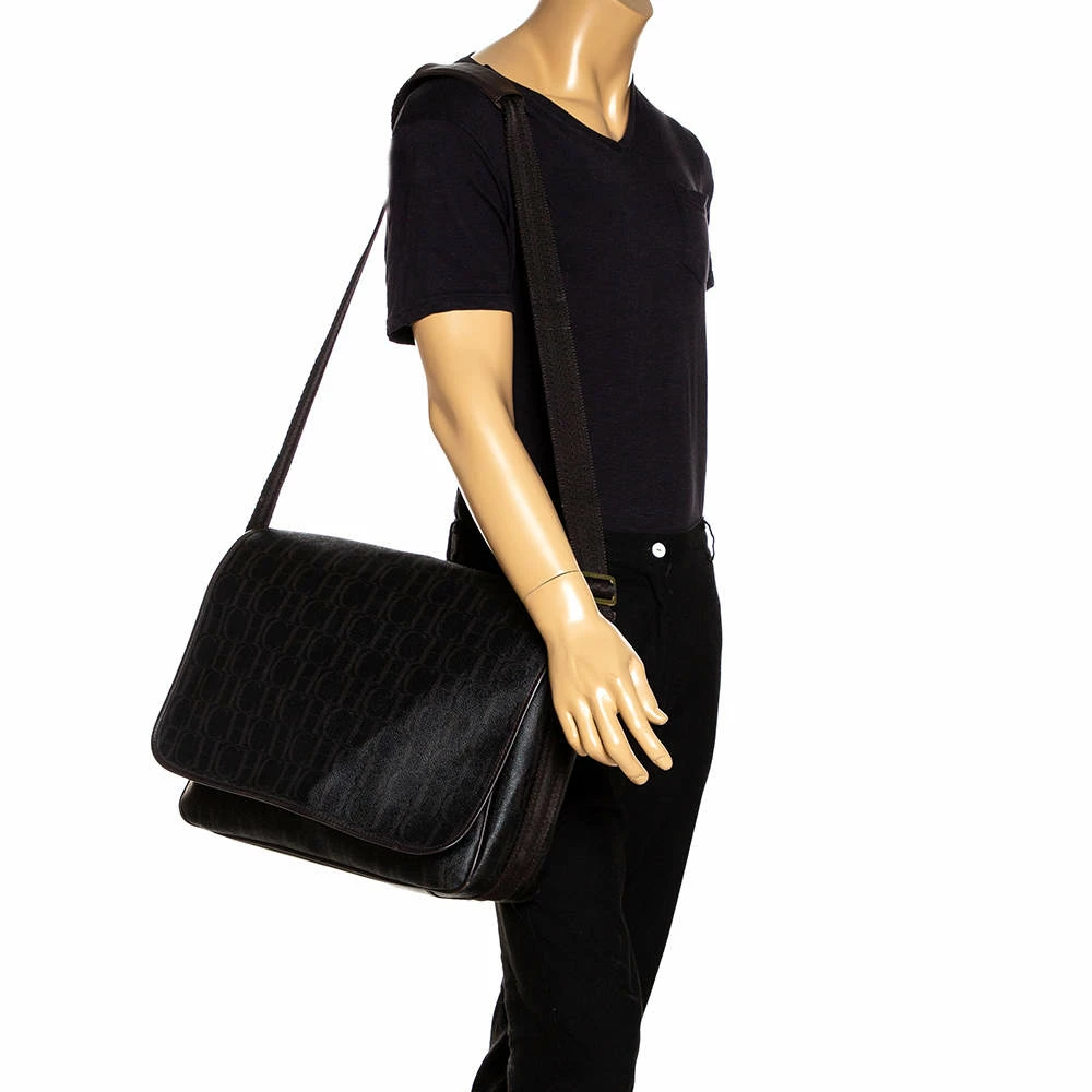 Let this messenger bag from Carolina Herrera enhance your exceptional and effortless style. It has been crafted from the brand’s signature monogram coated canvas and leather and features a front flap that opens to a spacious fabric-lined interior. It exhibits gold-tone hardware and comes equipped with an adjustable shoulder strap.