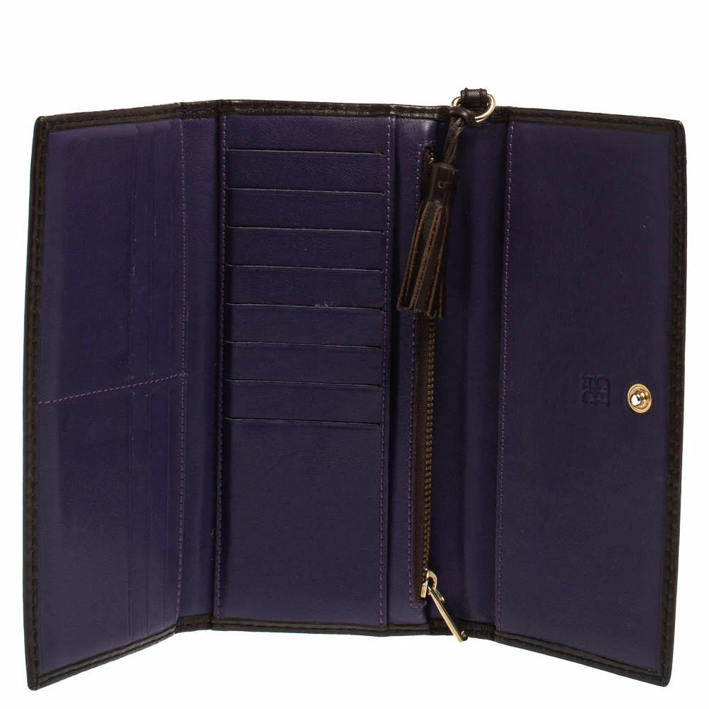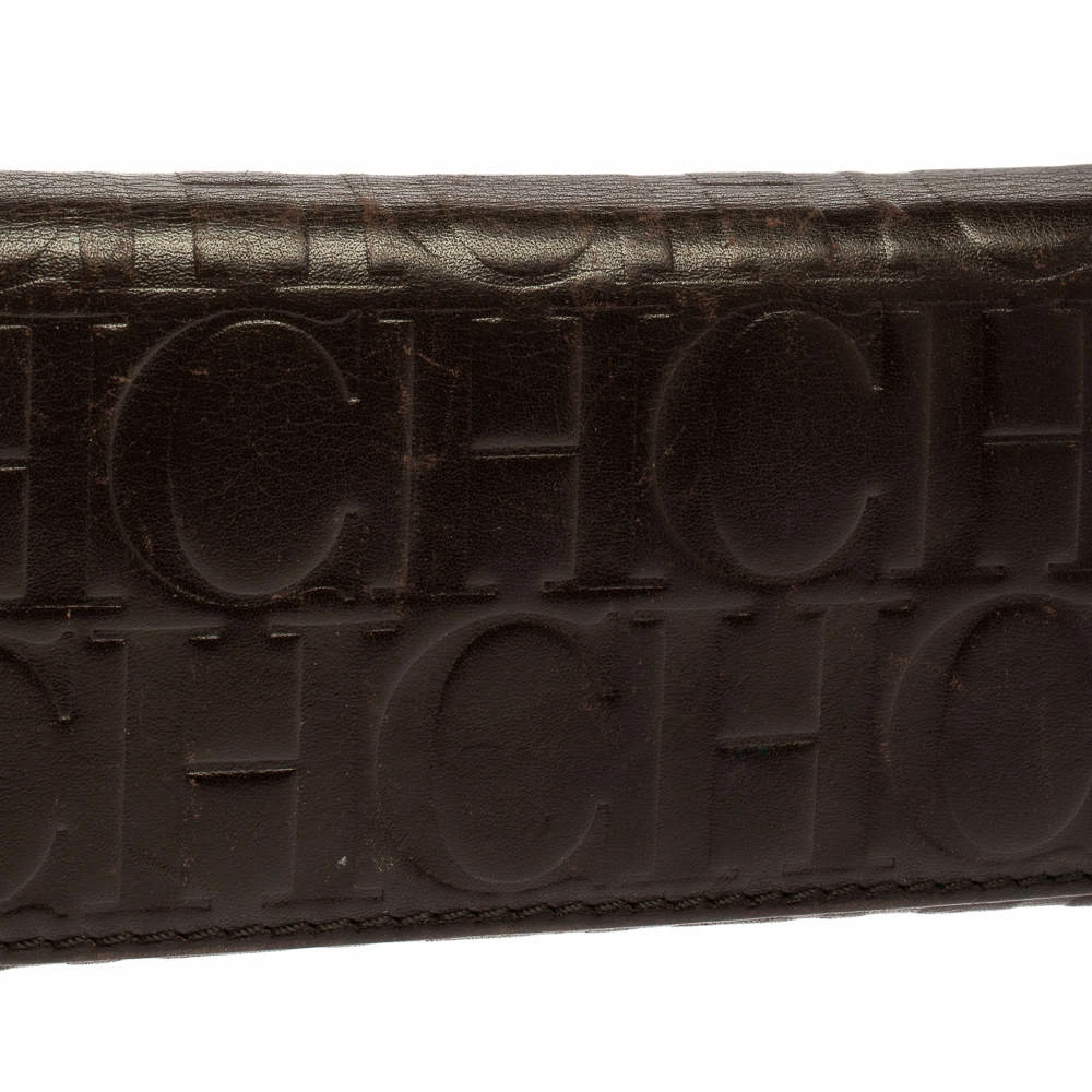 Designed to make an impression, this beautiful wallet from Carolina Herrera is a prized buy. Sleek and easy to carry, this leather creation comes in a dark brown shade with the CH logo embossed on the exterior. It has a tassel charm and an interior lined with leather and fabric and houses a zip pocket and multiple card slots.