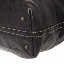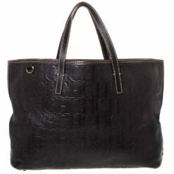 This admirable Carolina Herrera tote in a dark brown shade is complete with dual top handles. This luxurious leather tote is embossed with monogram all over. The fabric-lined interior is quite spacious and has one pocket for little essentials.