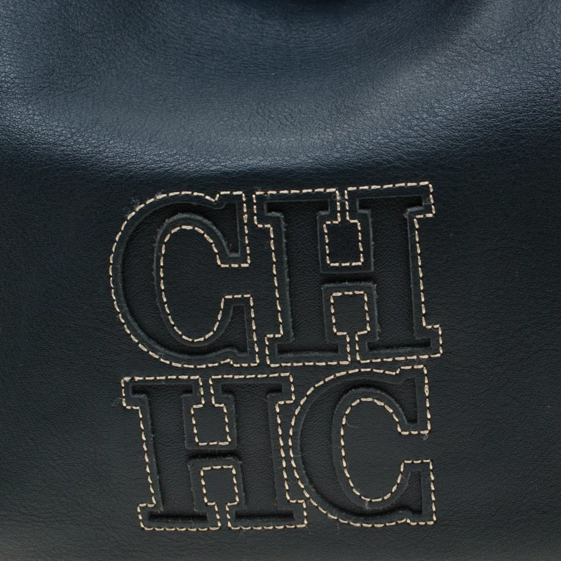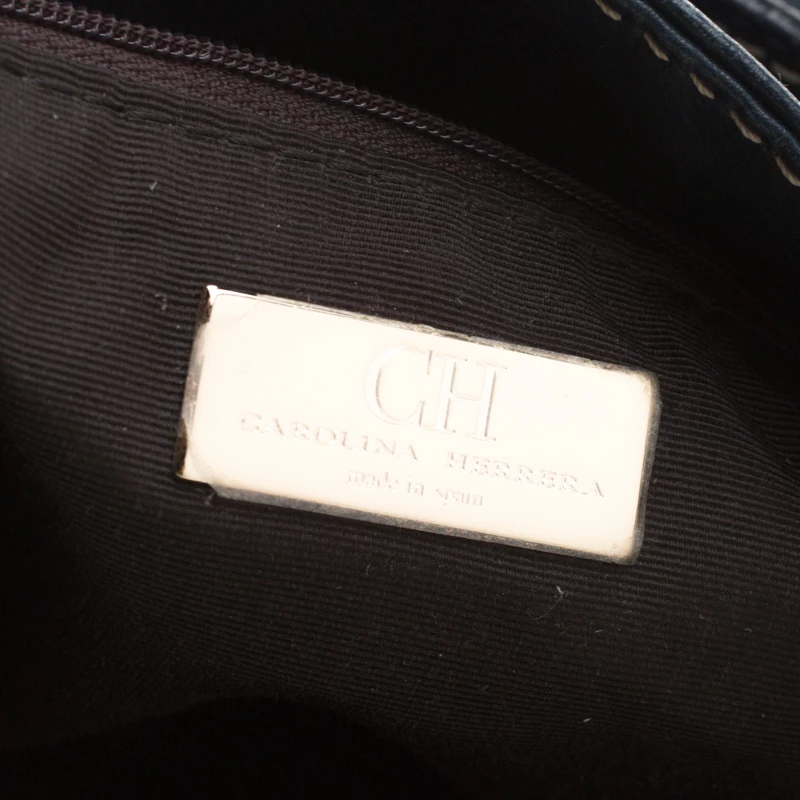 Crafted from dark green leather this Carolina Herrera tote features the classic CH logo on the front. The fabric interior is spacious and the bag is complete with dual handles.