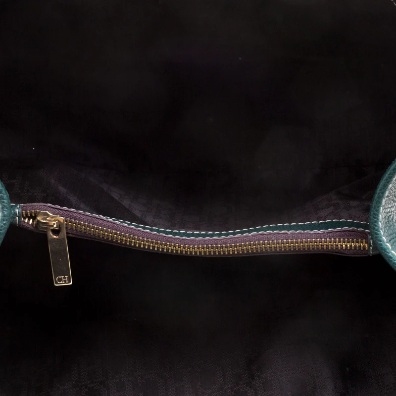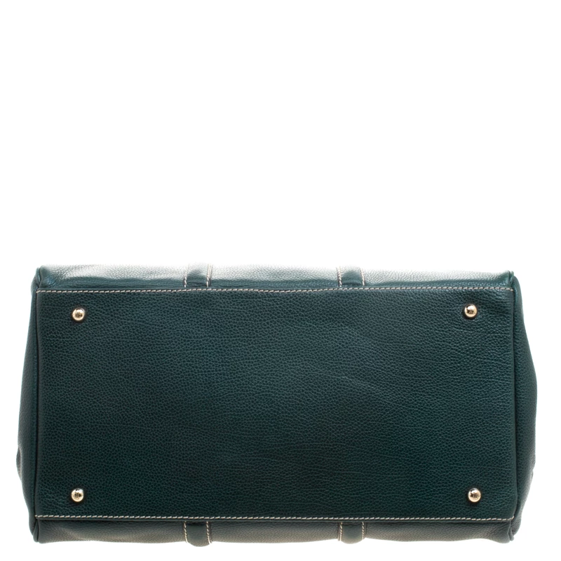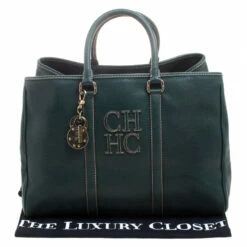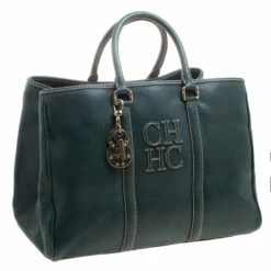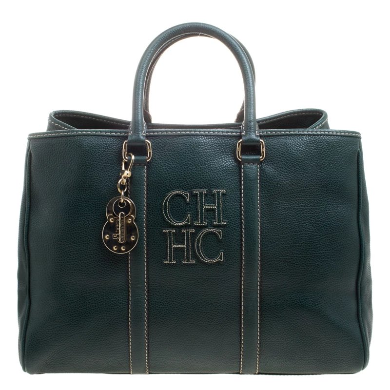 This stunning green Matteo Satchel is from the house of Carolina Herrera. Crafted from leather, and lined with fabric on the insides, the bag features dual rolled top handles, gold tone charm, protective metal feet, and the signature CH flaunted on the front. Swing it along to work or on a lunch with friends to lend your outfit the appropriate measure of class and style.