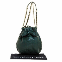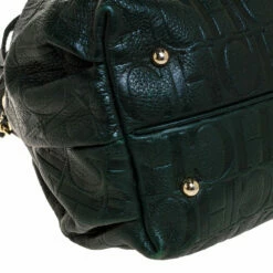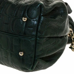 A beautiful bag is stylish and multi-functional with a spacious interior, just like this Carolina Herrera piece which is perfect for the day time. Crafted in the most stunning dark green leather, this bag is embossed with the signature CH pattern all over and completed with a drawstring closure and a bow detail at the front.
