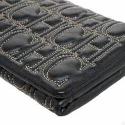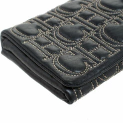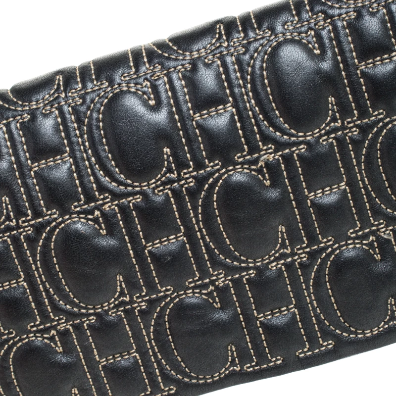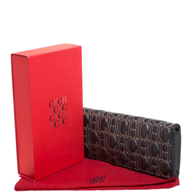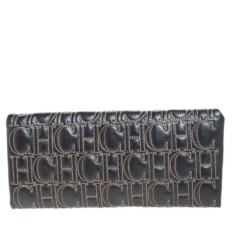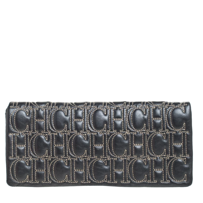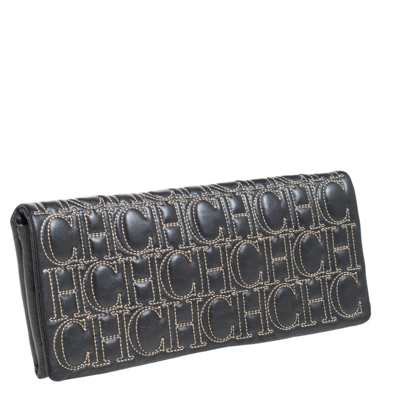 The dark grey monogram leather jerry clutch from Carolina Herrera goes well with any outfit. The clutch is crafted from leather, it has the CH stitch all over it. The clutch comes with a flap opening and has a magnetic snap closure. It has a fabric-lined interior, a zipped pocket and a logo plaque in black-tone.