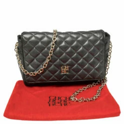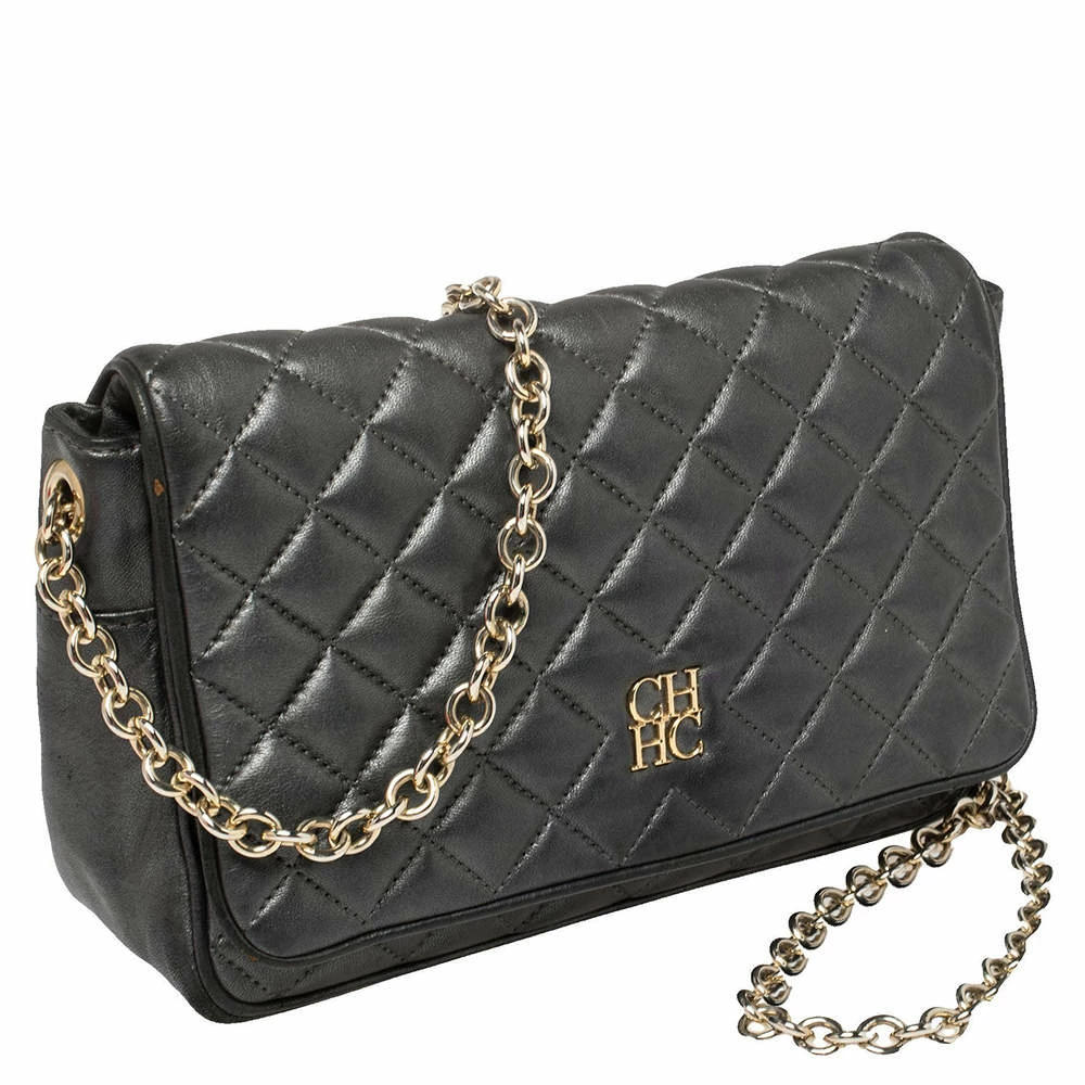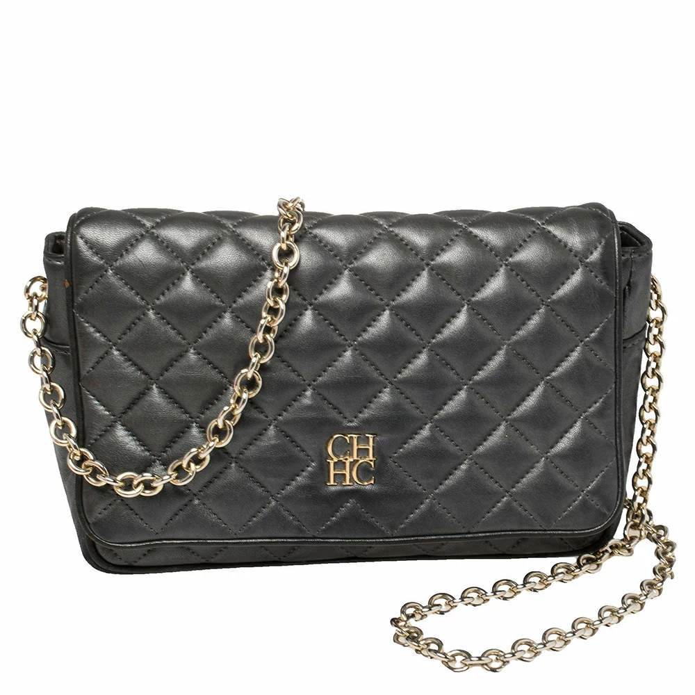 A stylish option for everyday use or special events is this bag from Carolina Herrera. It is crafted from quilted leather and features a flap design. It has the logo on the front and a fabric-lined interior that is well-sized. The bag is complete with a chain.