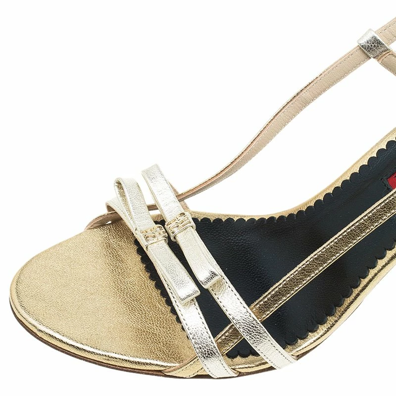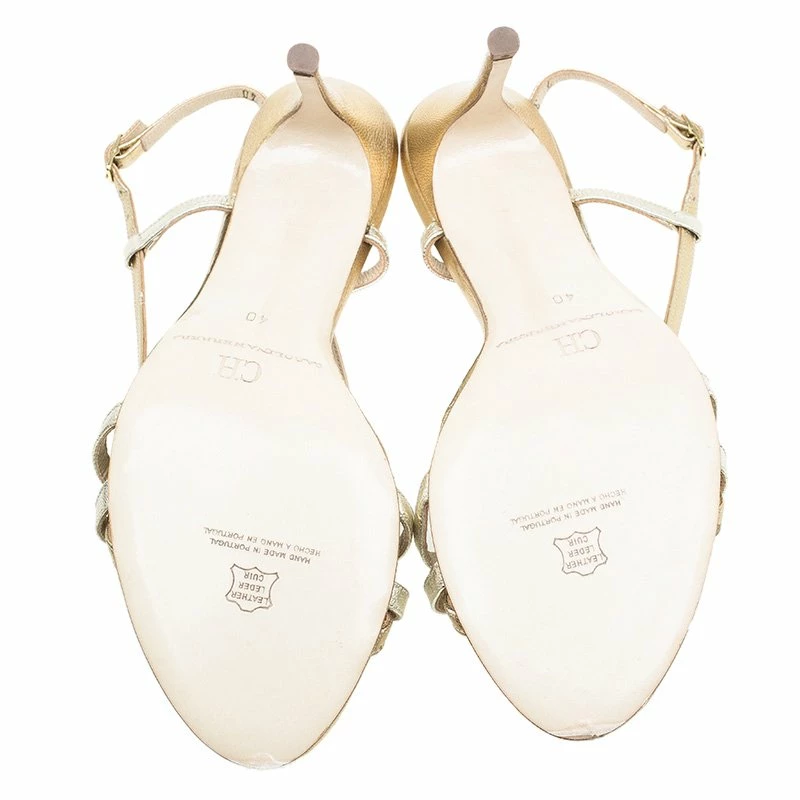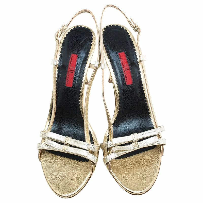 Let the straps play magic on your feet as you slide them into these superb slingback sandals by Carolina Herrera. It comes crafted in golden leather with double bow detailing at the vamps. Insoles are leather lined.