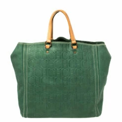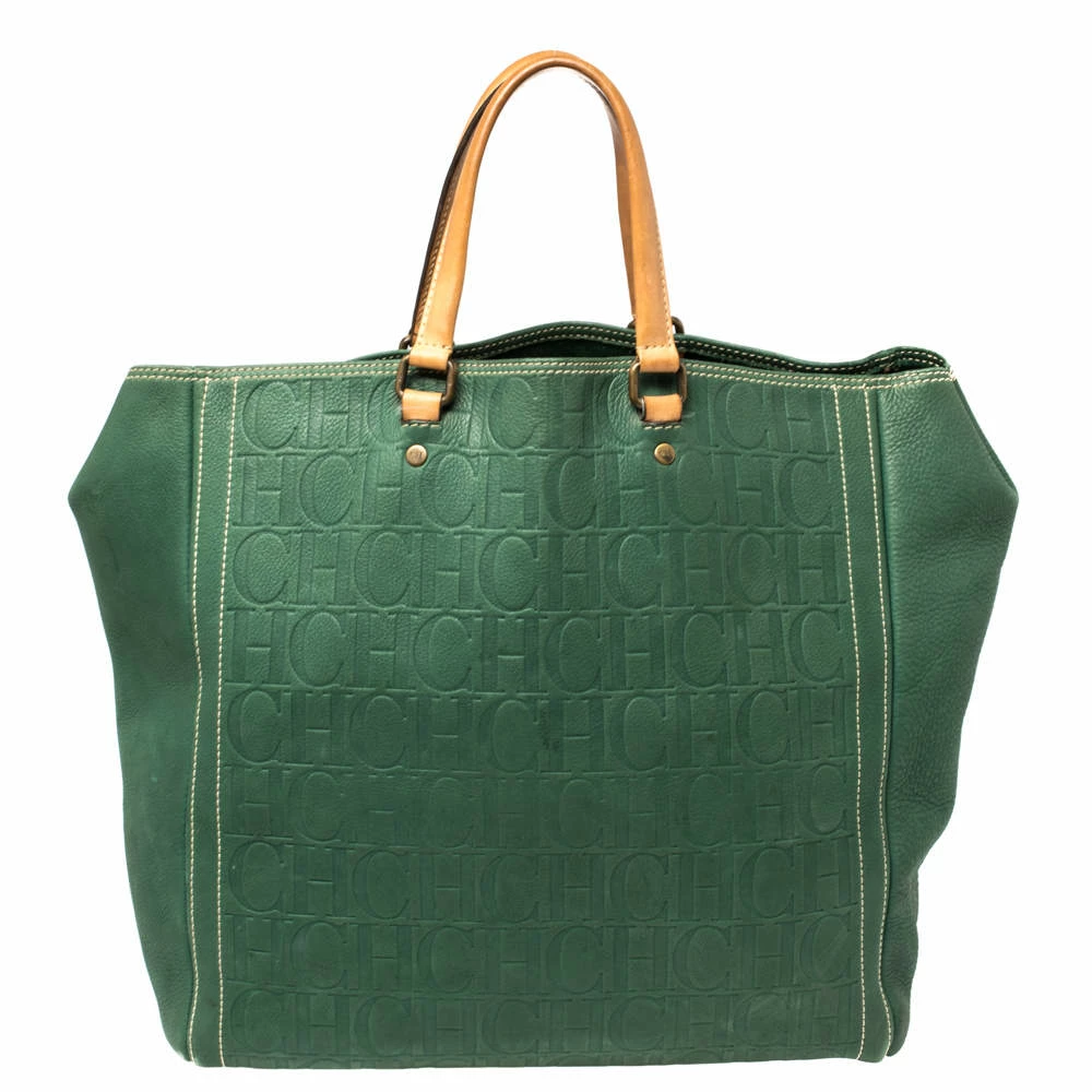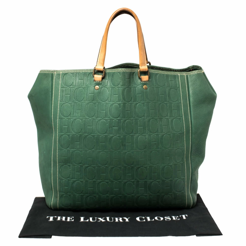 A truly elegant piece to add to your collection, this Andy tote by Carolina Herrera comes crafted from green leather and styled with monogram detailing all over. It features an open top, two handles, protective metal feet, and a spacious interior to house your essentials. This bag is a creation for all occasions.