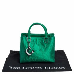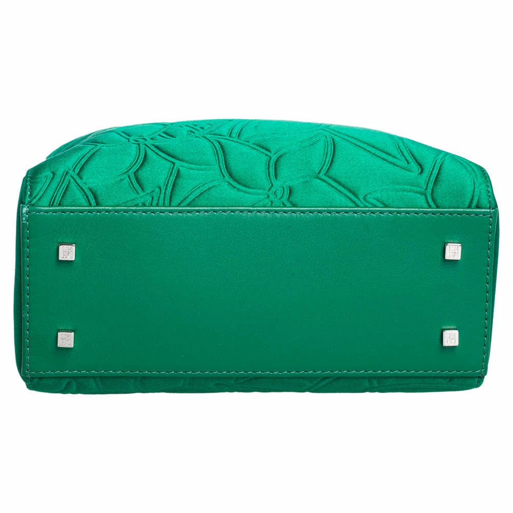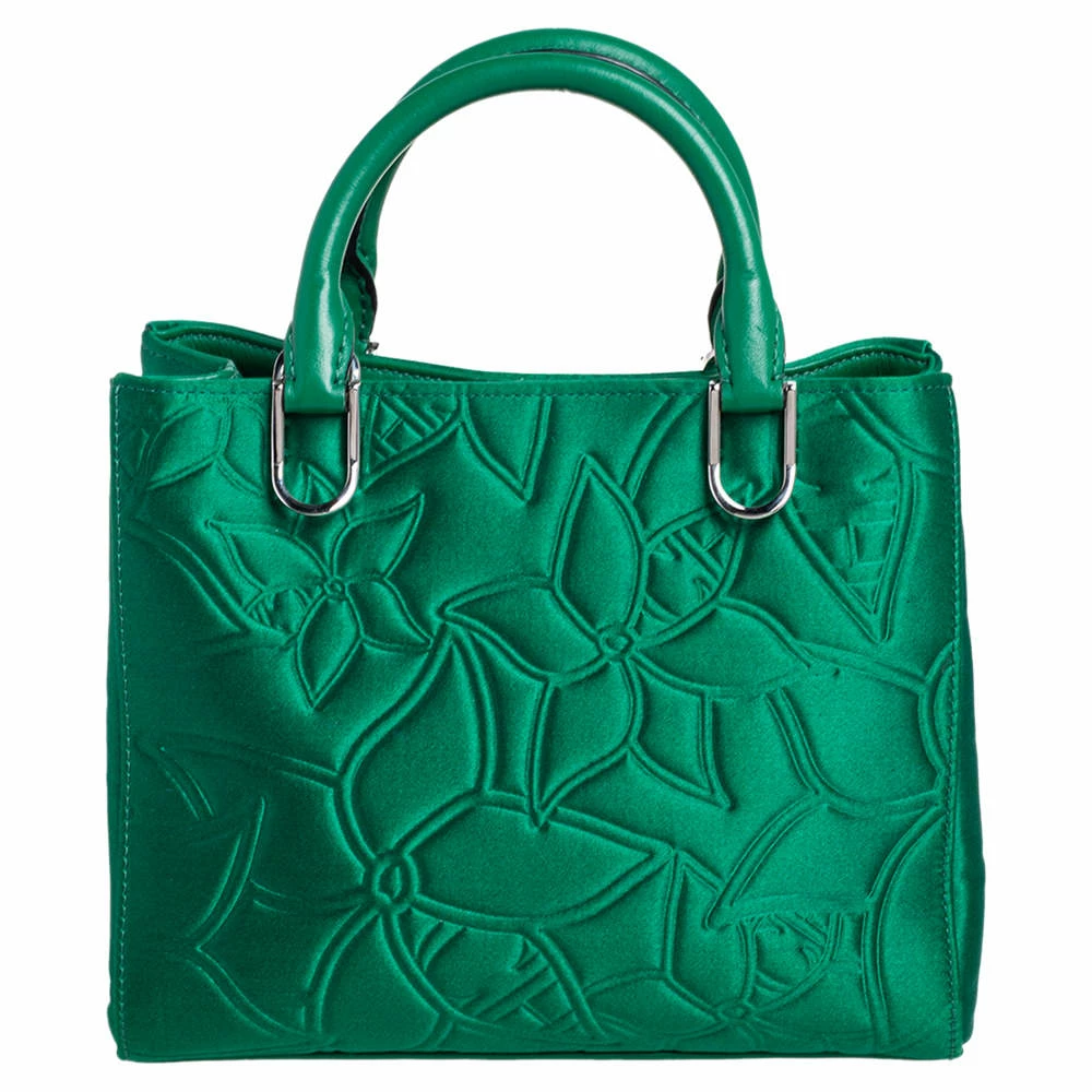 This Carolina Herrera handbag is an example of the brand’s fine designs that are skillfully crafted to project classic beauty. The tote is made of satin as well as leather and enhanced with floral patterns, two top handles, a signature logo charm, and a satin interior.