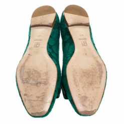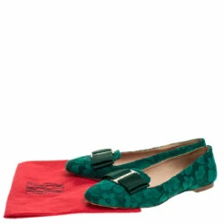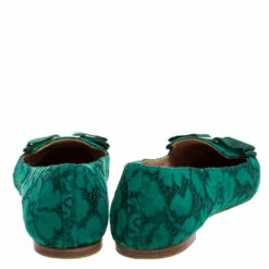 The house of Carolina Herrera brings you these impressive ballet flats that will complement any outfit. These lace and suede flats come in a stunning shade of green, They are styled with bows carrying the brand logo on the uppers and gold-tone hardware. They are finished with comfortable soles and leather lining.