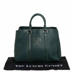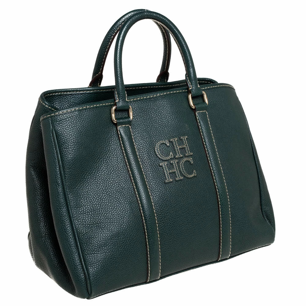 This stylish Andy tote bag by Carolina Herrera is great for everyday use. Crafted from quality leather, it comes in a lovely shade of green. It is styled with dual handles, logo detailing on the front, a fabric-lined interior with zip pockets, and enough space for your belongings. It is finished with gold-tone hardware.