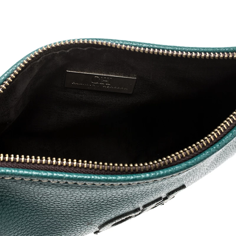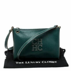 Keep your essentials close at hand with this Carolina Herrera crossbody bag. Crafted from green leather the bag features the classic CH logo on the front. The zip top closure opens to a fabric lined interior and the bag is complete with a shoulder strap.