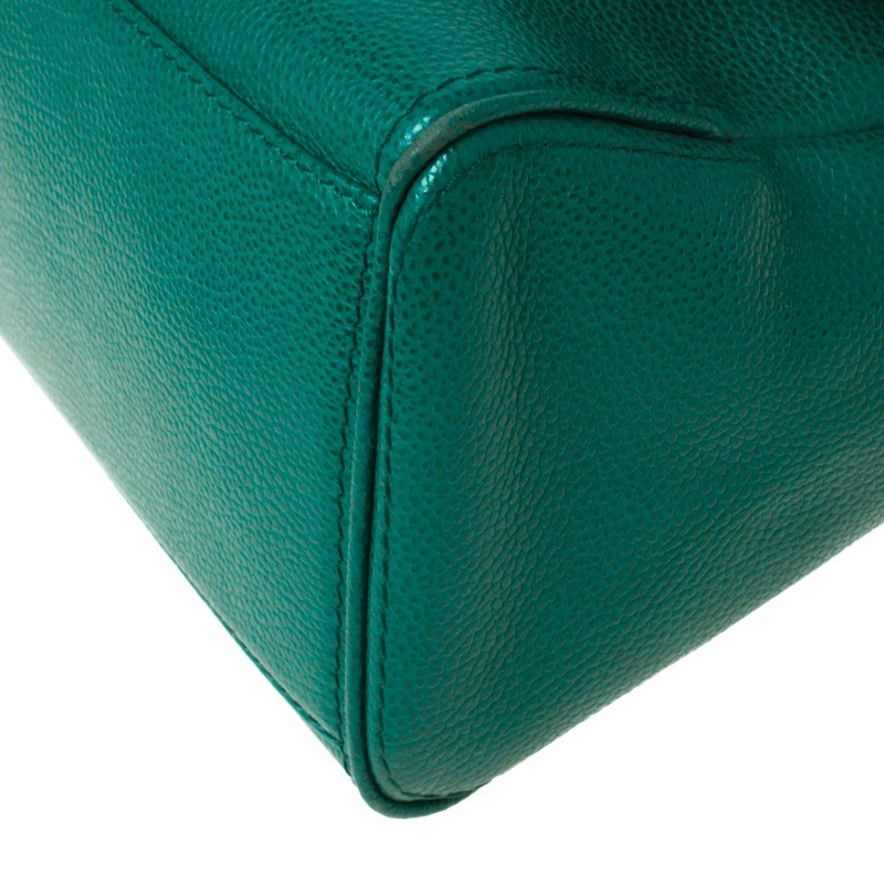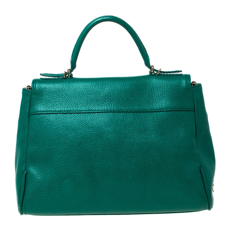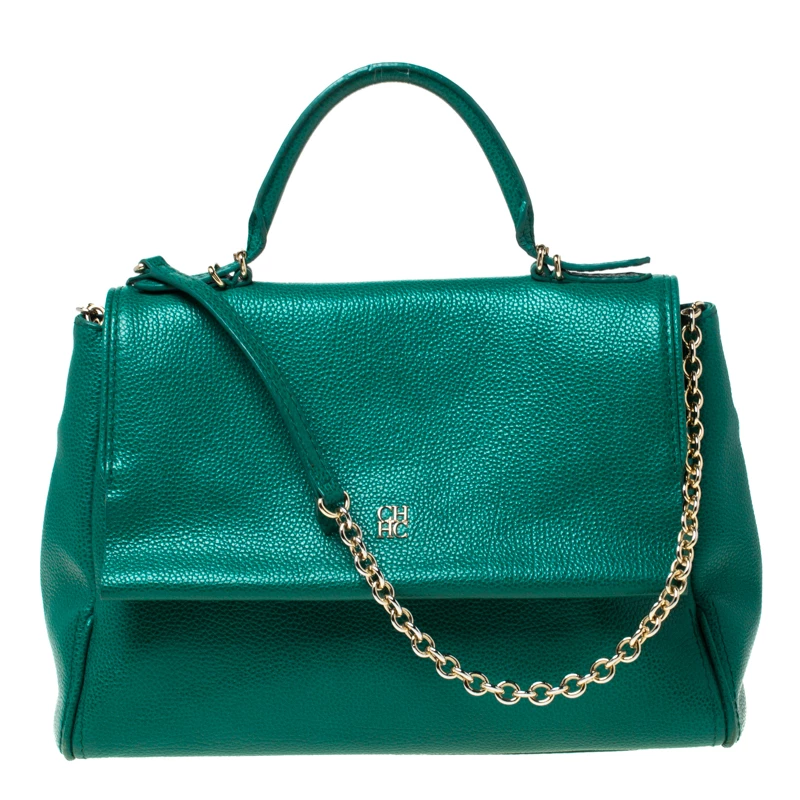 This Minuetto flap bag from the house of Carolina Herrera is something you would go to season after season. It has been crafted from a green leather body and features a flap style. It comes with a chain and leather shoulder strap in addition to a top handle. It opens to a spacious interior that can easily hold your day to evening essentials. Carry it with elan!