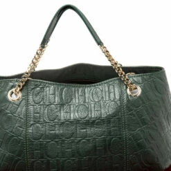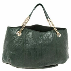 This Carolina Herrera tote is highly fashionable and functional. This bag is covered in green monogram leather, and it has dual leather-chain handles for easy hold and is accentuated with gold-tone hardware. A comfortable carry, it will suit most of your outfits.