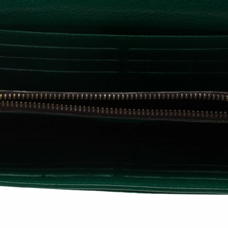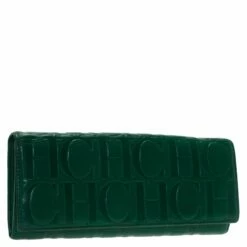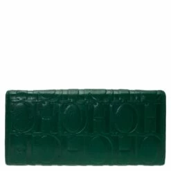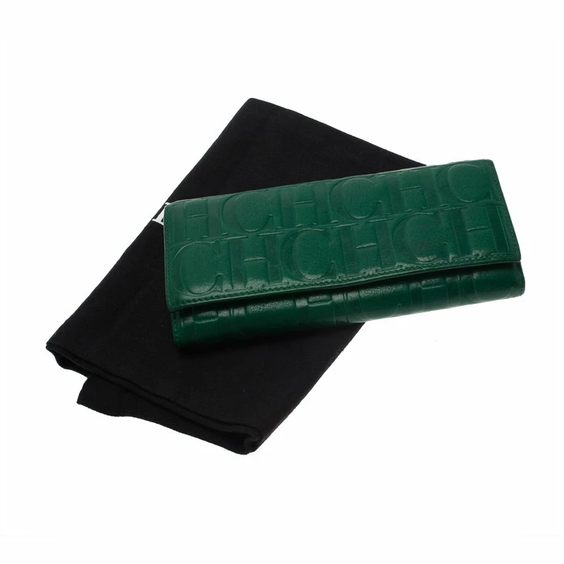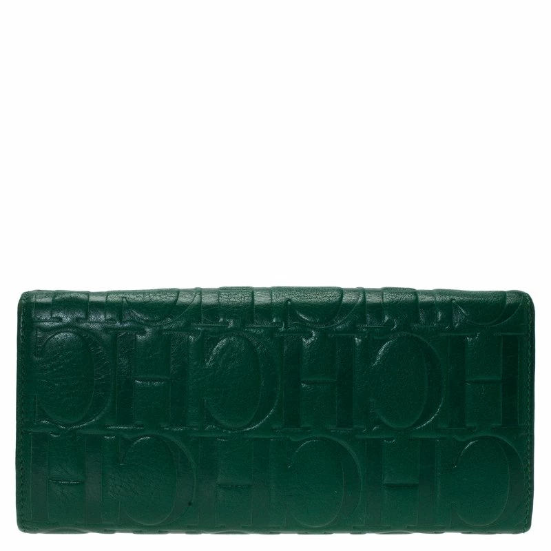 This Carolina Herrera monogram embossed continental wallet is made from fine green leather. Its interior is styled with multiple card and bill slots to keep things organised. Secured by a snap closure, it has a flat shape allowing it to be carried easily or slipped into a larger bag.