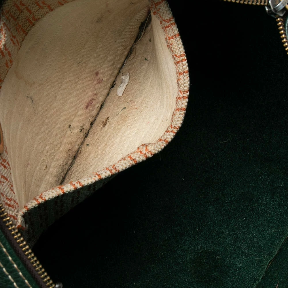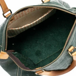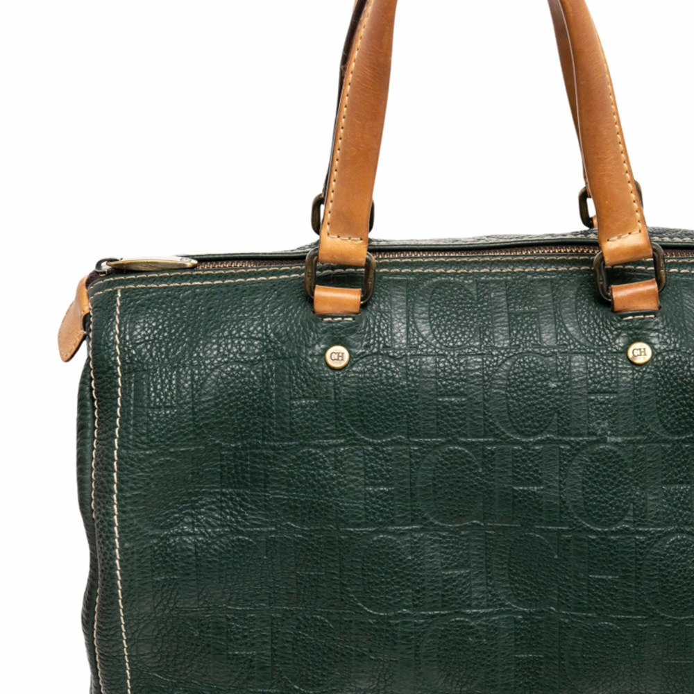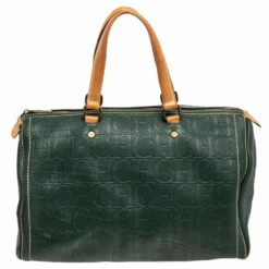 A truly elegant piece to add to your collection, this Andy Boston Bag by Carolina Herrera comes crafted from green monogrammed leather and is styled with neat stitch detailing. It features a top zip closure, two handles, protective metal feet, and a spacious fabric interior to house your essentials. This bag is a creation for all occasions.