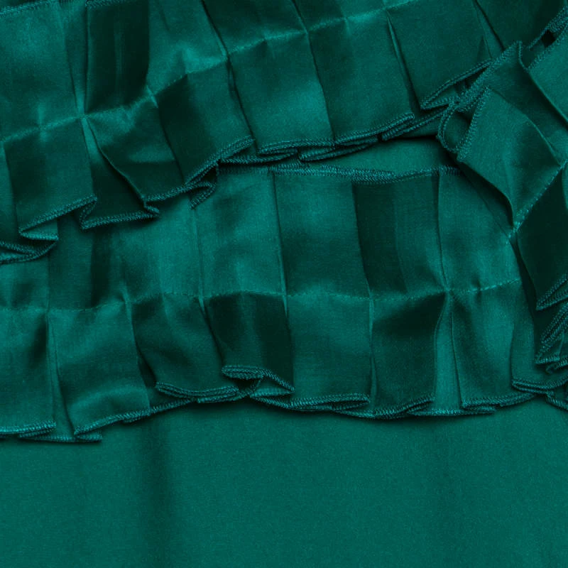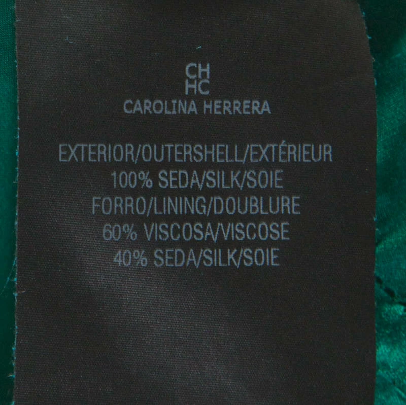 Sway like a dream in this evening gown from Carolina Herrera. Tailored to perfection, the grand green gown brings the elegance of ruffles coupled with a feminine silhouette. It has a zipper and a hemline that beautifully falls to the floor. Pair it up with simple heels, fine jewelry and a glitzy clutch.