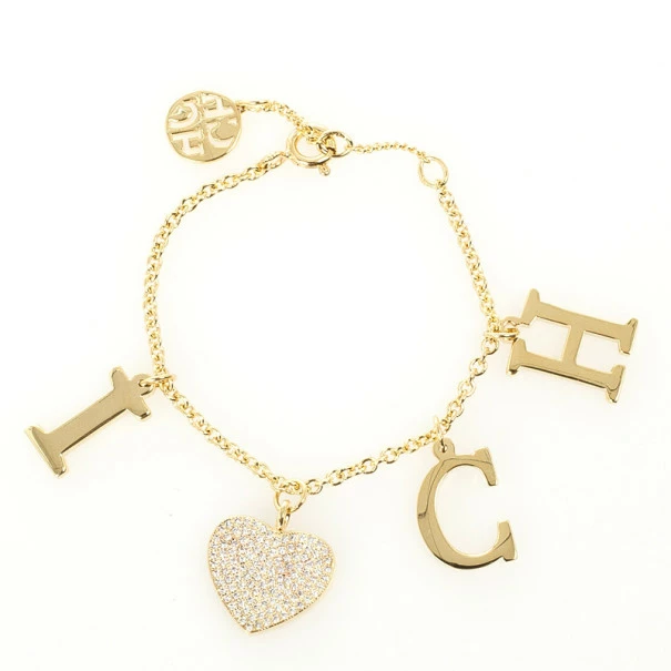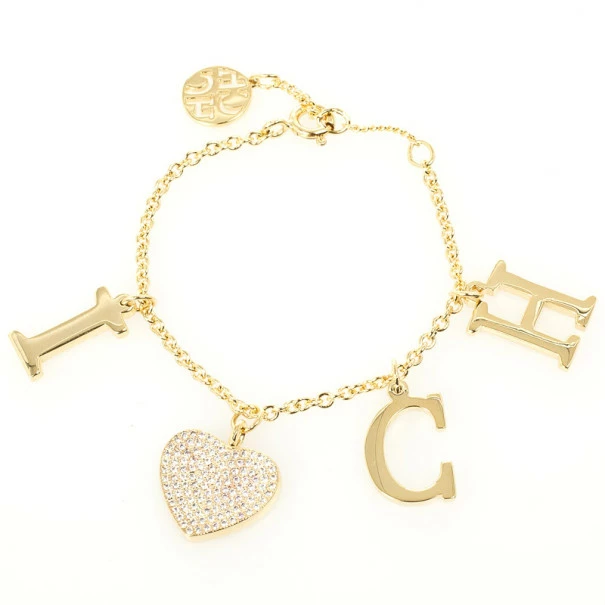 Adorn your wrist with this bracelet by Carolina Herrera. The dangling heart, I, C and H charms are linked to the chainlink bracelet. It is equipped with a springring clasp. Pair it with the necklace from the same collection.Original Retail Price: US $271