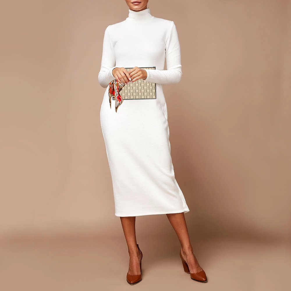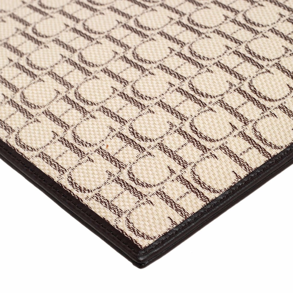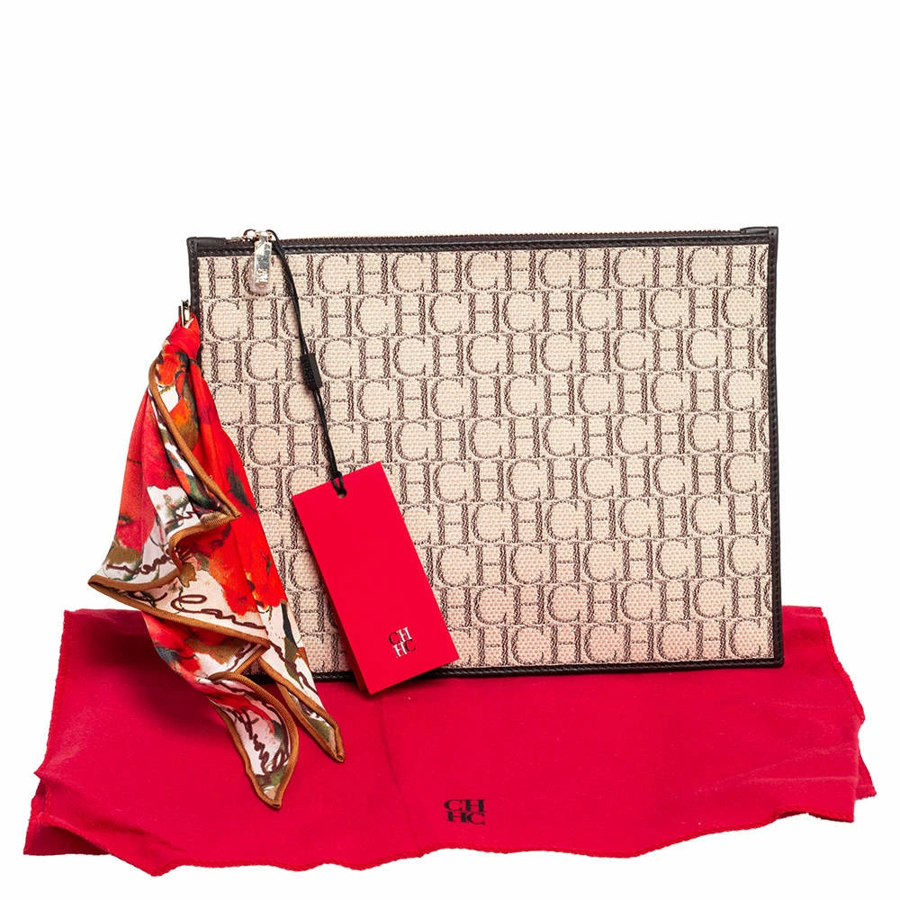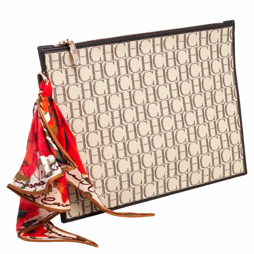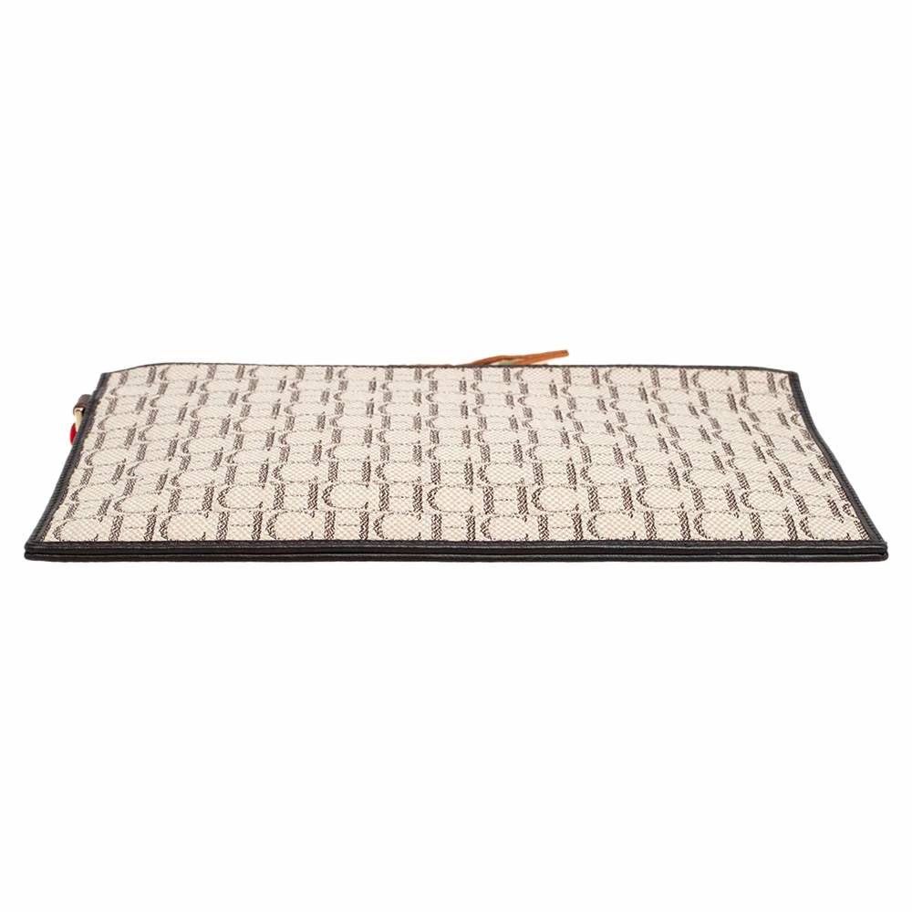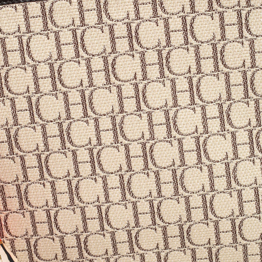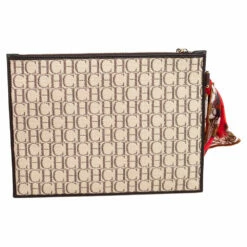 This women’s pouch from Carolina Herrera has been made using monogram canvas and leather in Spain. It has a fabric interior secured by a zipper on top. The handy pouch will carry your everyday essentials, make-up, and other accessories.