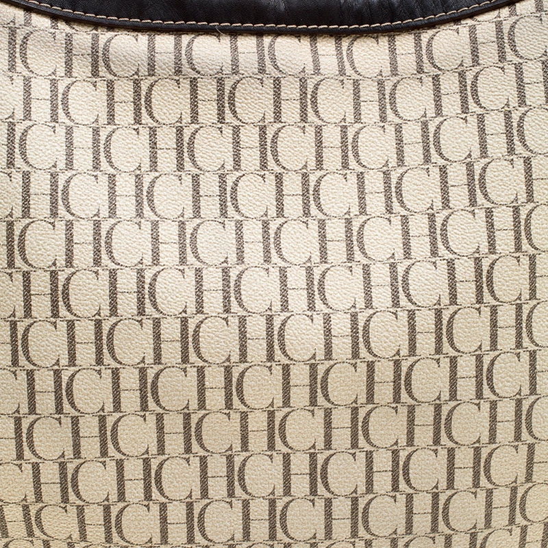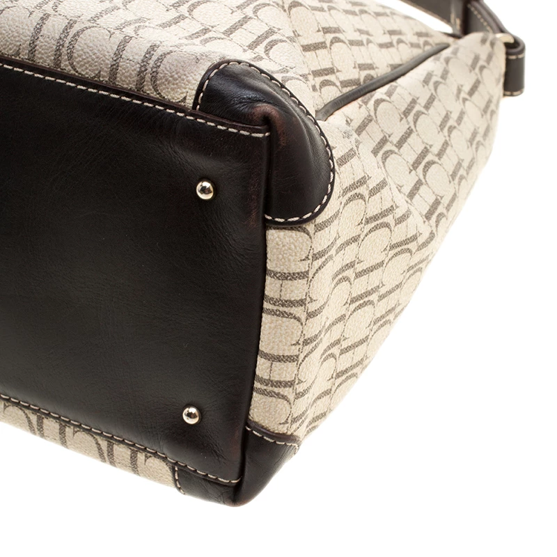 Stylish and classy, this coated canvas and leather bag from Carolina Herrera takes you through your day with ease. It is all you need to go about your day in style and luxury. Complement your clothing by adorning this handbag in beige color, lined with nylon, and featuring gold-tone hardware.