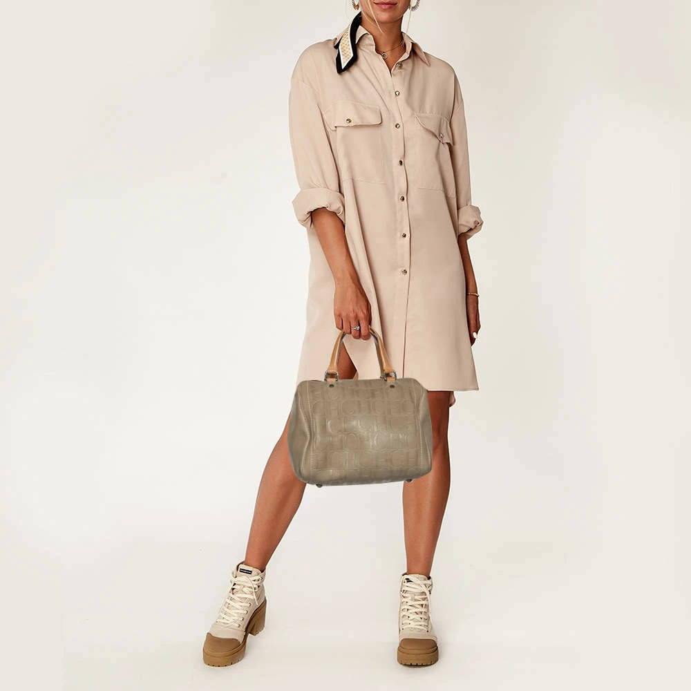 This Andy Boston Bag by Carolina Herrera comes crafted from embossed leather and styled with neat stitch detailing. It features a top zip closure, two handles, protective metal feet, and a spacious interior to house your essentials. This light beige bag is a creation for all occasions.