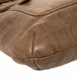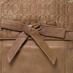 This flap bag by Carolina Herrera is crafted from light brown leather. Highlighted with a bow on the flap, it features the brand monogram embossed all over and comes with two handles and a fabric-lined interior with a zip pocket on the inside.