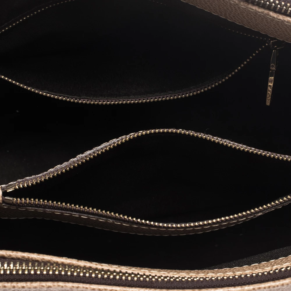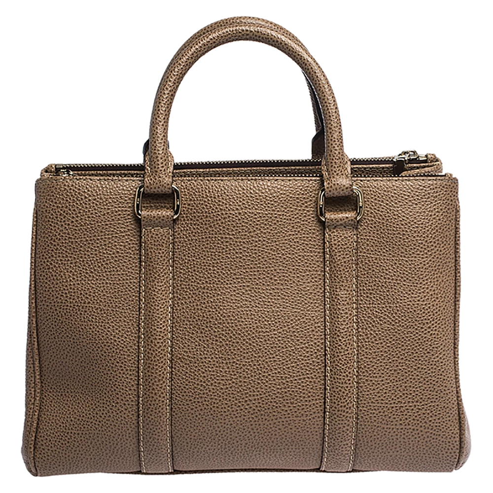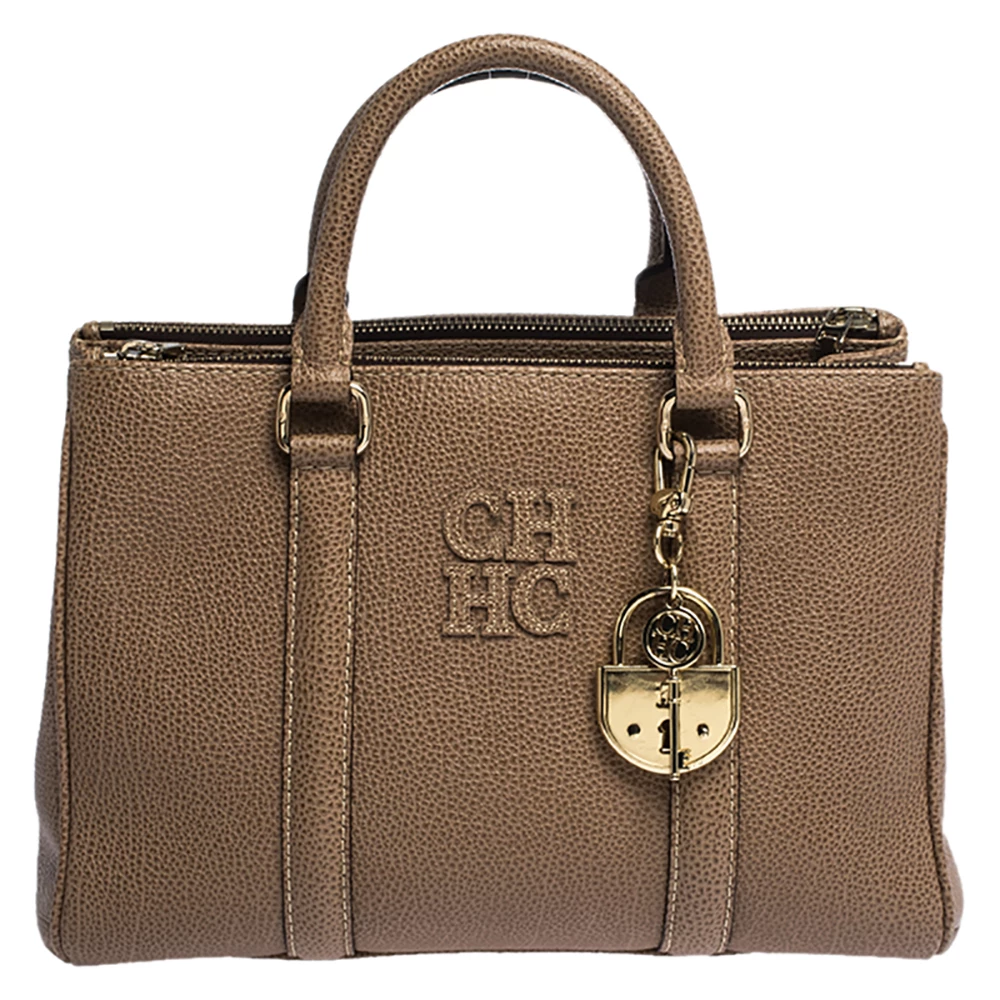 This stylish Andy tote bag by Carolina Herrera is great for everyday use. Crafted from quality leather, it comes in a lovely shade of light brown. It is styled with dual handles, logo detailing on the front, fabric-lined interior with zip pocket, zip compartment and enough space for belongings. It is finished with a shoulder strap and gold-tone hardware.