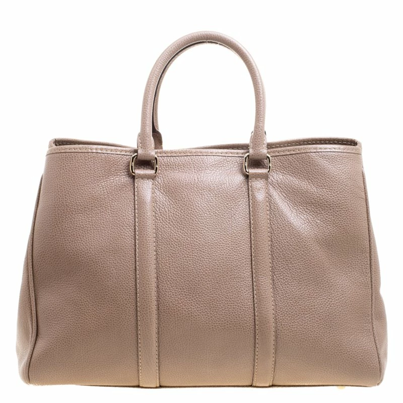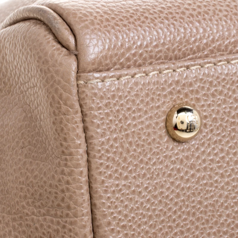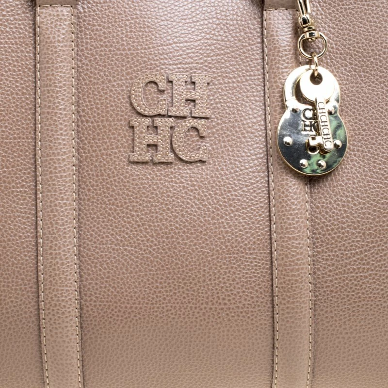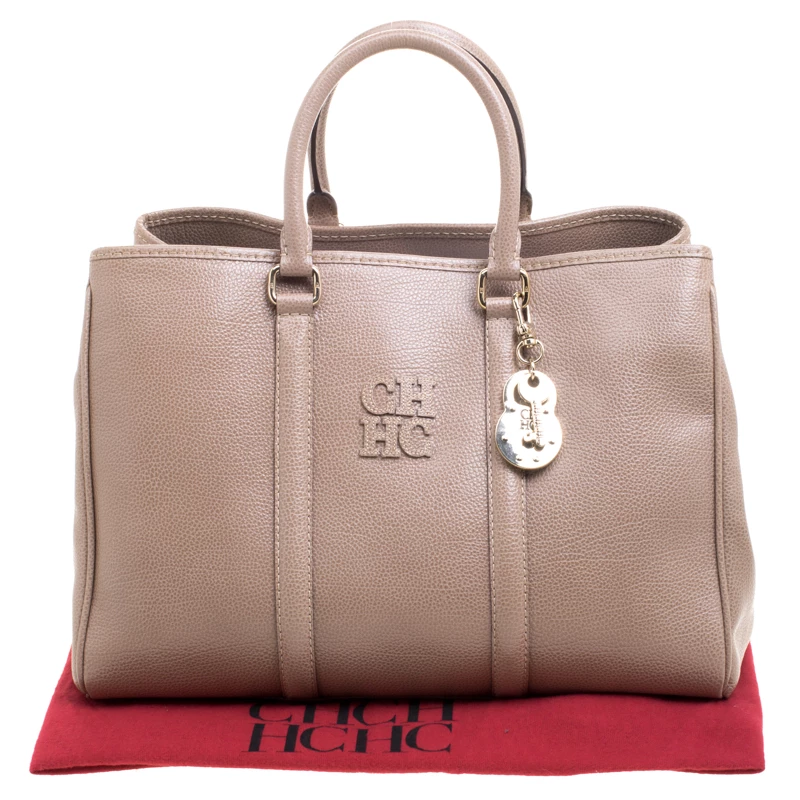This stunning light brown tote is from the house of Carolina Herrera. Crafted from leather, and lined with fabric on the insides, the bag features dual rolled top handles, gold-tone ‘lock and key’ charm and the signature CH flaunted on the front. Swing it along to work or on a lunch date with friends to lend your outfit the appropriate measure of class and style.