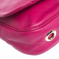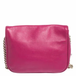 This Carolina Herrera bag is nothing but an example of pure elegance. The bag is crafted from magenta leather and the nylon-lined interior lends shape and offers ample space for your belongings. The bag is held by a chain-link and flaunts the brand logo on the front.