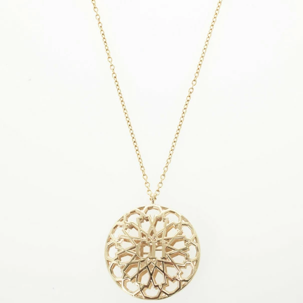 Carolina Herrera CH Medallion Gold Tone Pendant Necklace Women