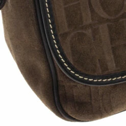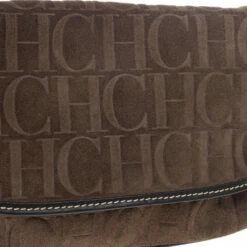 This chic and practical Carolina Herrera messenger bag is ideal for any woman on the go. Crafted from brown suede, it features a CH embossed flap closure, contrast stitching, chain link and leather shoulder strap. The large unlined interior features a zip pocket.