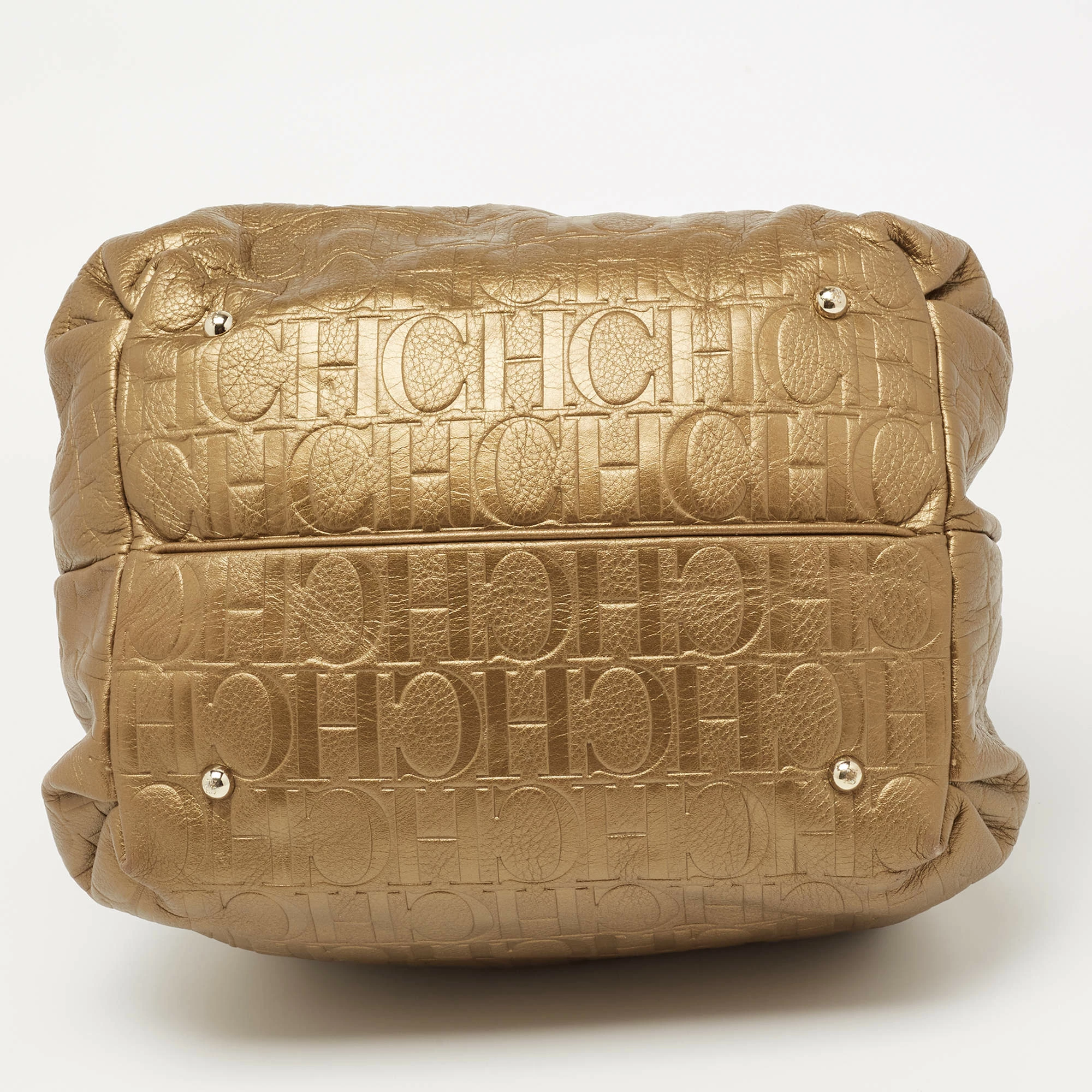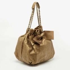 This Carolina Herrera bag has a bucket shape and it comes in metallic bronze. The bag is created from monogram leather and detailed with a bow, a sliding chain handle, and a spacious nylon interior for your essentials. It is gorgeous and ideal for daily use.