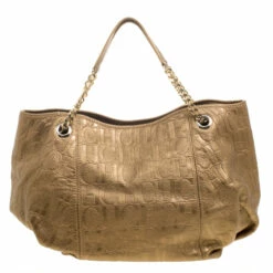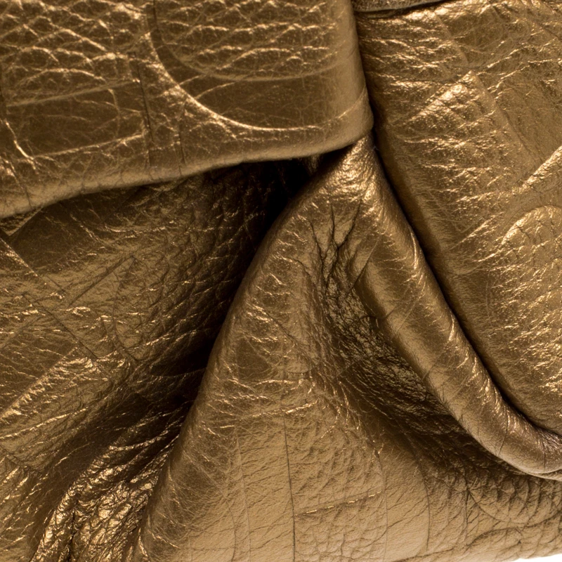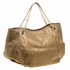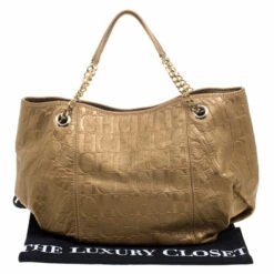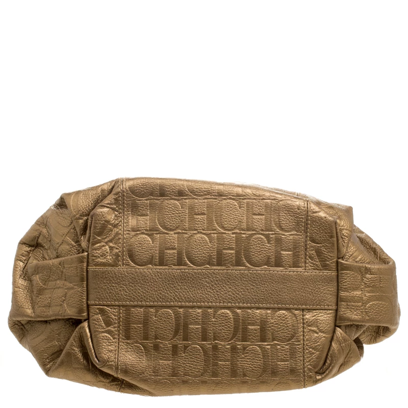 This Poppy hobo by Carolina Herrera combines function and fashion. Crafted from CH embossed leather, the bag features a spacious fabric interior. The hobo flaunts a classy metallic gold shade and it is held by two chain handles.